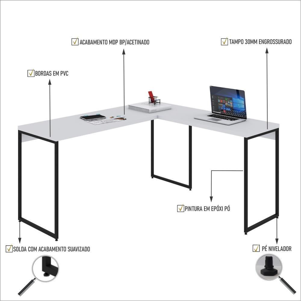 Mesa Em L Dynamica Diretor 150x140x75cm Branco Chess - Est.preta Branco Chess - Est.preta