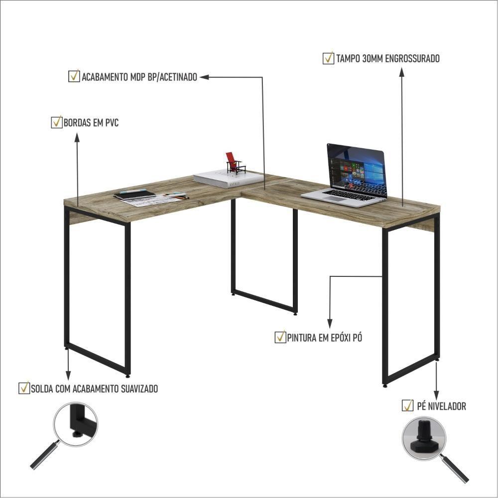 Mesa Em L Dynamica Office 120x140x75cm Carvalho / Carvalho / Sobre o ProdutoMesa em L Dynamica Office 120X140X75cm Branco Chess / Est.PretaDescrição do Produto:A Mesa L Office DYML5120 é um produto prático e versátil, que pode ser utilizado em diversos ambientes, como quarto e escritório, na sala, cozinha ou seu depó Linha Dynamica reúne design minimalista e praticidade, traços retos e móveis versáteis são as características dessa coleção. As estruturas metálicas possuem pintura Epóxi e sapatas niveladoras e, nos tampos, MDP Perffect Acetinado com fitas de borda em PVC. Itens Inclusos:1 Mesa LDimensões dos Produtos:Mesa em L Dynamica Office 120X140X75cm Branco Chess / 120 x 140 x 75 cmInformações Logísticas (Comp. X Prof. X Alt.) 143 x 54 x 11 cm - Peso: 18,4 KgPeso Total: 18,4 KgObservações:Não acompanha acessórios decorativos. Imagens meramente ilustrativas.Informações Técnicas / Características:- Cor do Produto: Branco Chess / Cor do Predominante: Branco- Marca: Compace- Modelo: DYML5120- Linha: Dynamica- Material: Mdp- Material da Estrutura / Pés: Aço- Acabamento: Perffect Acetinado- Escala de Brilho: Fosco- Fita de Borda: Pvc - Possui Gavetas: Não - Possui Pés: 2- Pés Niveladores: Sim - Acabamento Estrutura: Epóxi-Pó Texturizado- Formato: Em L - Suporta Até (kg): 45 kg- Comprimento: 120cm- Profundidade: 140cm- Altura: 75cm - Peso Lí.: 17,42Kg- Recomendações de Uso, Manutenção e Limpeza: Para a limpeza, utilize flanela seca ou pano macio levemente umedecido em água. Utilize um pano seco em seguida. Evite com produtos químicos (solventes, thinner, acetona, etc) e não utilize nenhum tipo de esponja de aço.- Necessita de Montagem: Sim / Acompanha Manual de Montagem- Complexidade da Montagem: Média: pode ser montado por mais de uma pessoa e/ou necessite de maior conhecimento para montagem.- Garantia: 6 meses Material: Mdp | Acabamento: Perffect Acetinado | Escala de Brilho: Fosco | Fita de Borda: Pvc | Material da Estrutura: Aço | Acabamento da Estrutura: Epóxi-Pó Texturizado | Produto: Mesa | Cômodo indicado: Escritórios | Cor: Multicolorido | Tonalidade: Multicolorido | Comprimento: 120 | Altura: 75 | Largura: 140 | Profundidade: 140 | Coleção: Industrial | Requer Baterias: Não | Certificação Externa: Não aplicável | Componentes inclusos: É frágil | Sim: Preço de tabela | 292.88099999999997: Fabricante | Compace: do Modelo | 1: da Peça | DYML5120: | Montagem: | Recursos da Escrivaninha: | Duração da Garantia: | Coleção de Antiguidade: | Marca: | Móvel Dobrável: | País de Origem: | Desing da Escrivaninha: | Base da Mesa: | Tipo de Mesa: | Dimensões do Produto (A x L x C), sem a caixa de embalagem: | Produto personalizado: | Tipo de Garantia: | Recursos da Mesa: | Tamanho Do Pacote: | Motivo de Isenção Anvisa: | de Assentos: | Data de validade Anvisa: | Shape: | Formato da Escrivaninha: | Formato do Espelho: | Temas de Estampas: | Nr. do Lote do Produto: | Altura da Mesa: | Código Anvisa do Produto: | Funcionalidades: | Estilo: | Qtd. de Produto no Lote: | Quantidade: Cor: Carvalho /