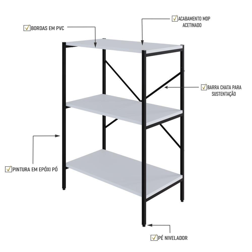 Estante C/03 Prateleiras 84x60x33cm Tub Tueh863 Branco Chess - Est.preta Branco Chess / Est.preta