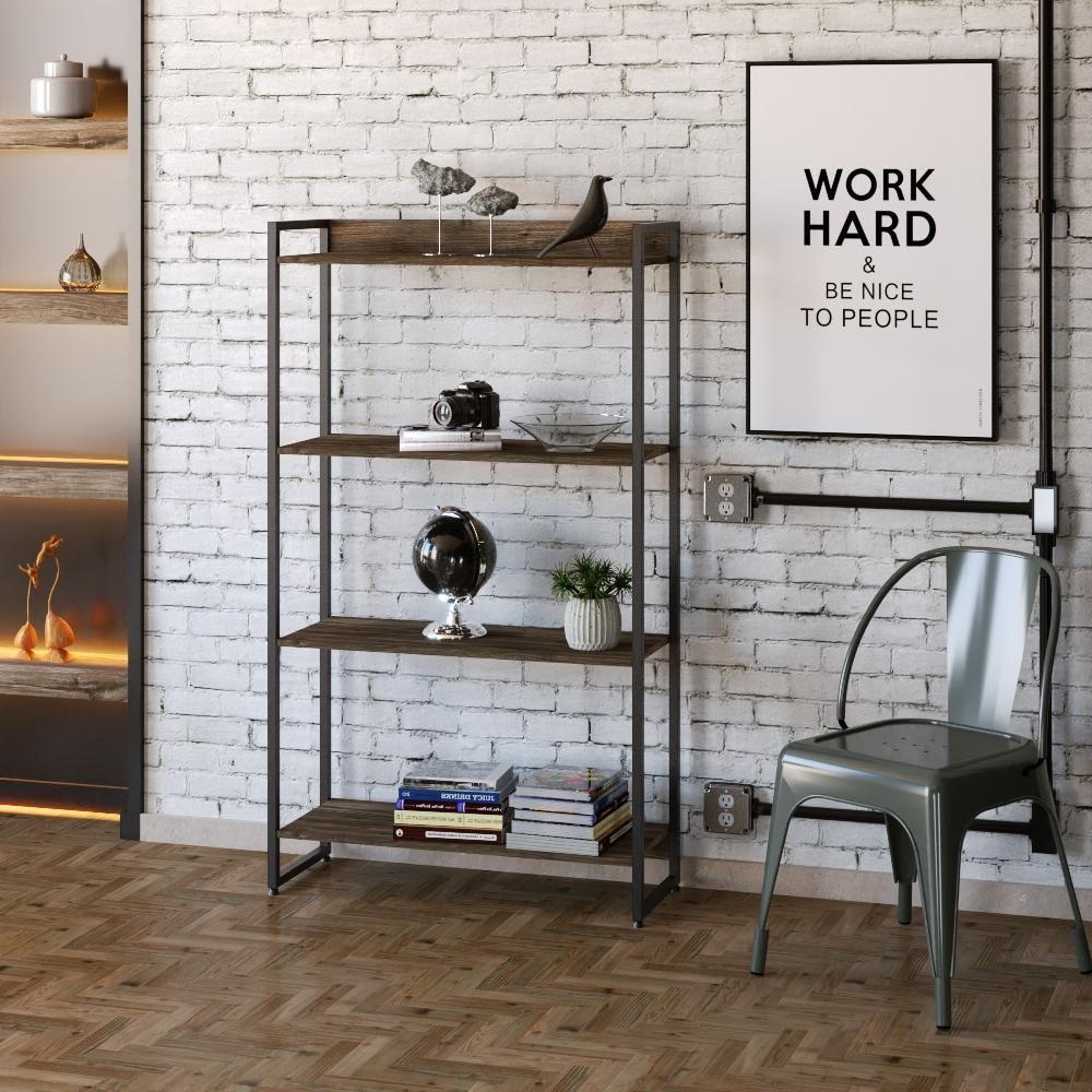 Estante Dynamica 80x30x146cm C/04 Prateleiras Carvalho Dark / Est.preta Carvalho Dark / Est.preta