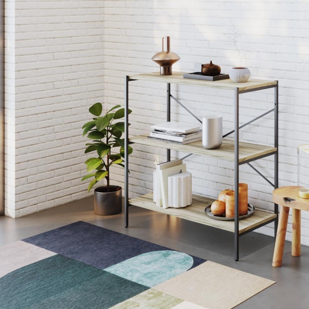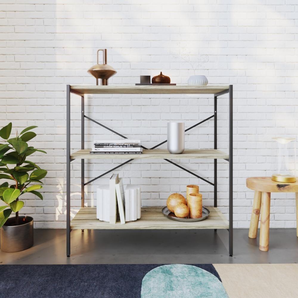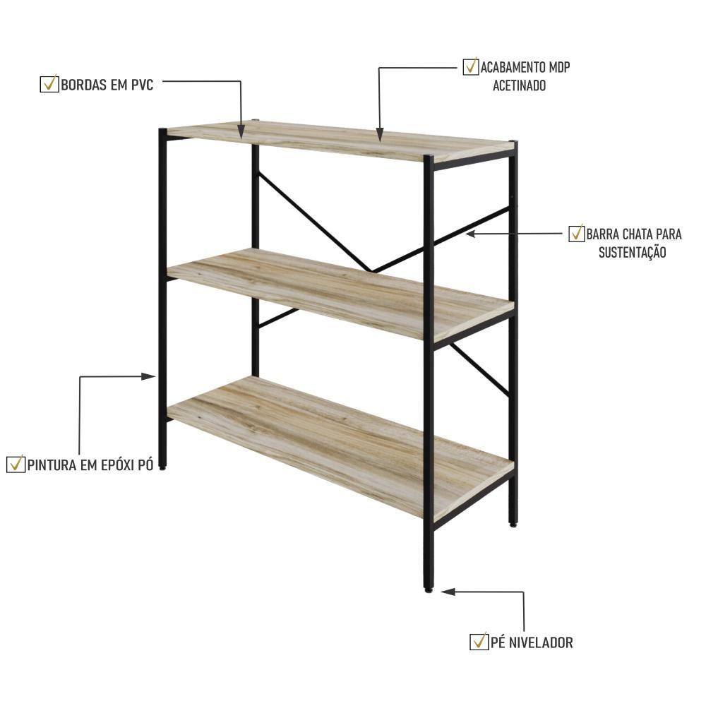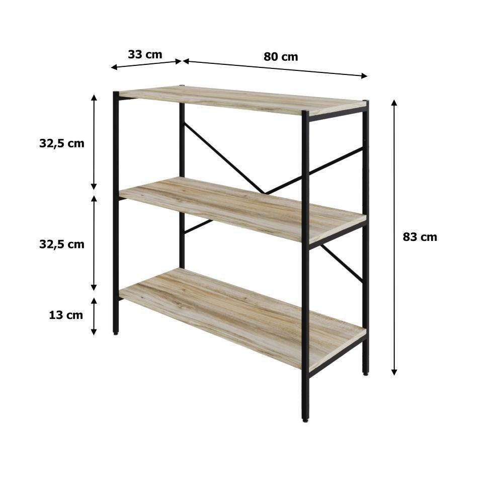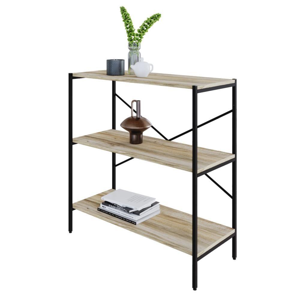 Estante C/03 Prateleiras 84x80x33cm Tub Tueh883 Carvalho - Est.preta Carvalho / Est.preta