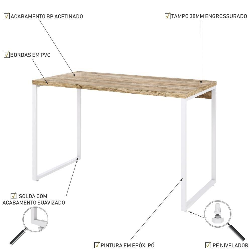 Mesa Kuadra Office 120x60x75cm Carvalho - Est.branca Carvalho - Est.branca