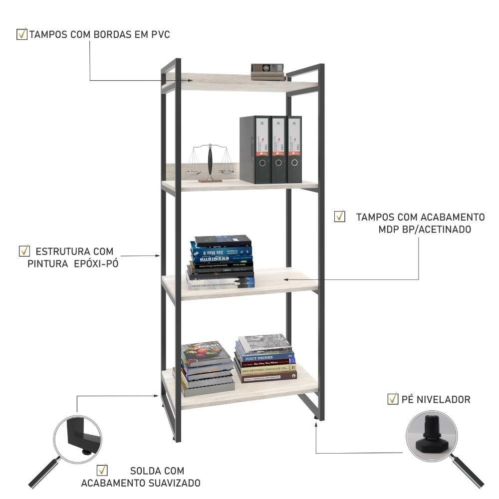 Estante Kuadra 60x40x146cm C/04 Prateleiras Snow / Est.preta Snow / Est.preta