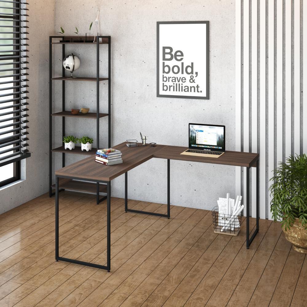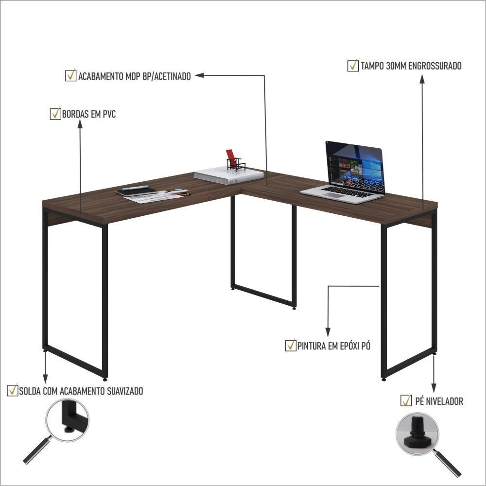 Mesa Em L Dynamica Office 135x140x75cm Nogal - Est.preta Nogal - Est.preta