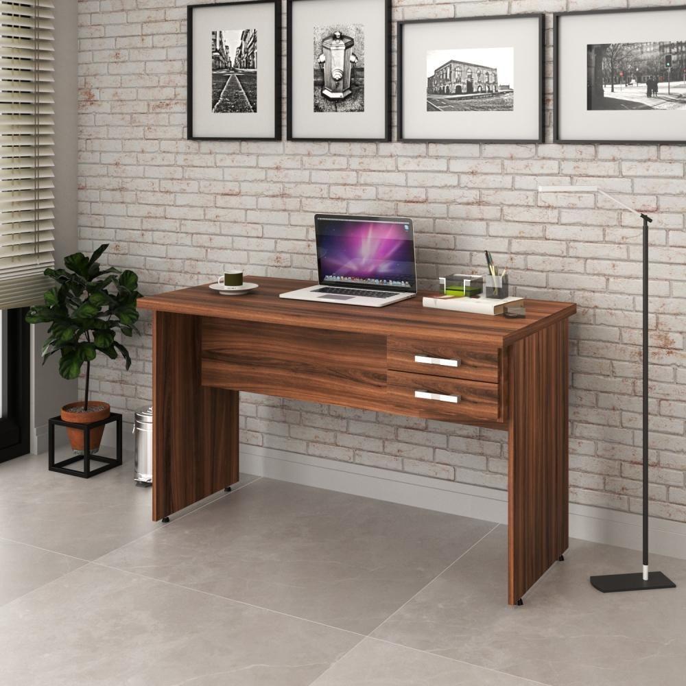 Mesa Escrivaninha De Escritório 1,20m Tampo 30mm C-02gavetas Nogal