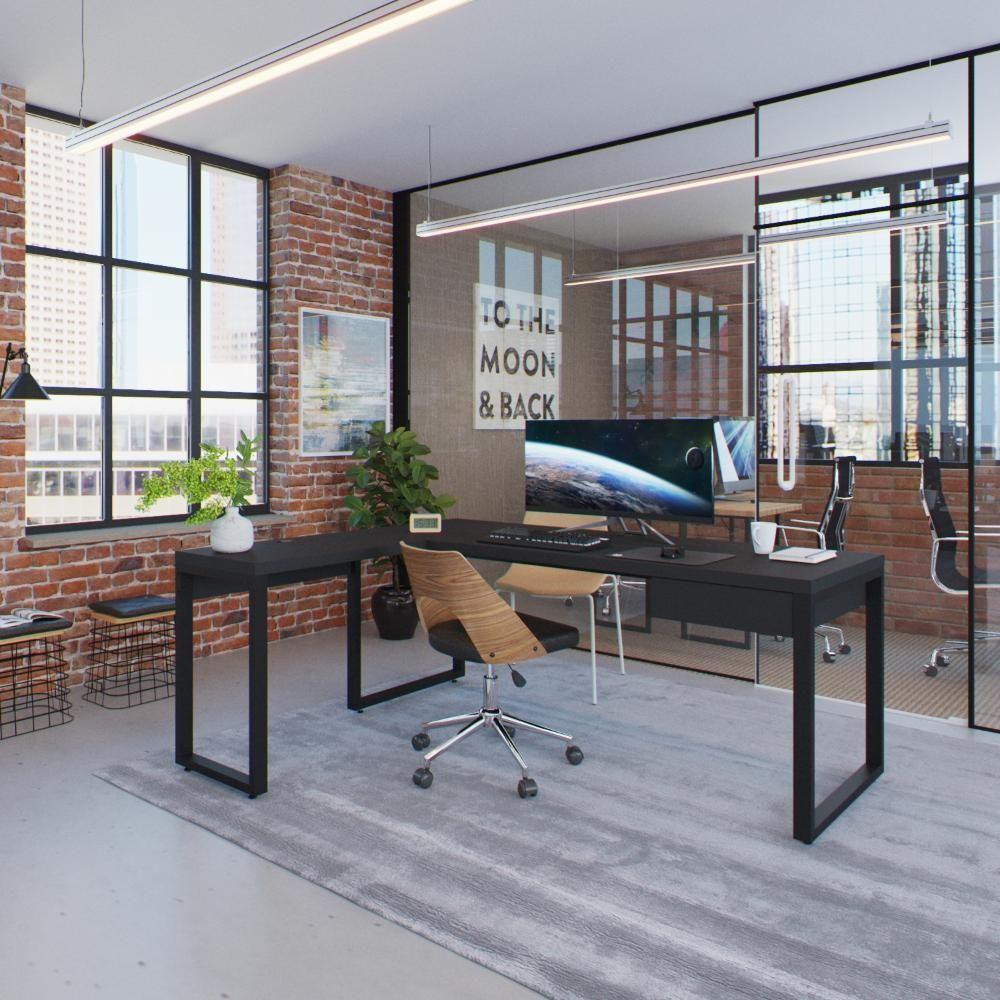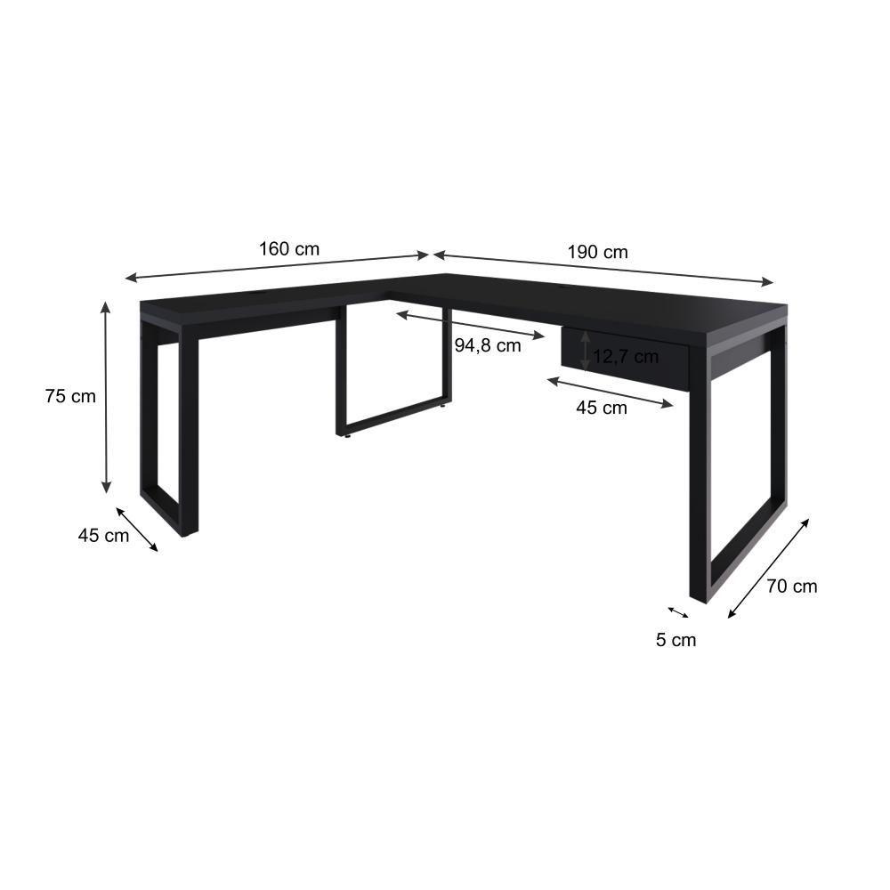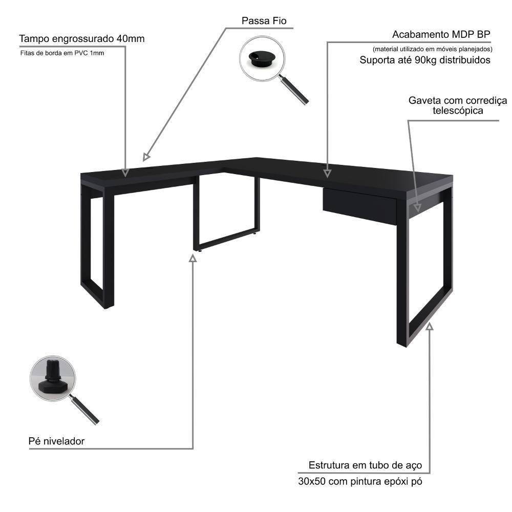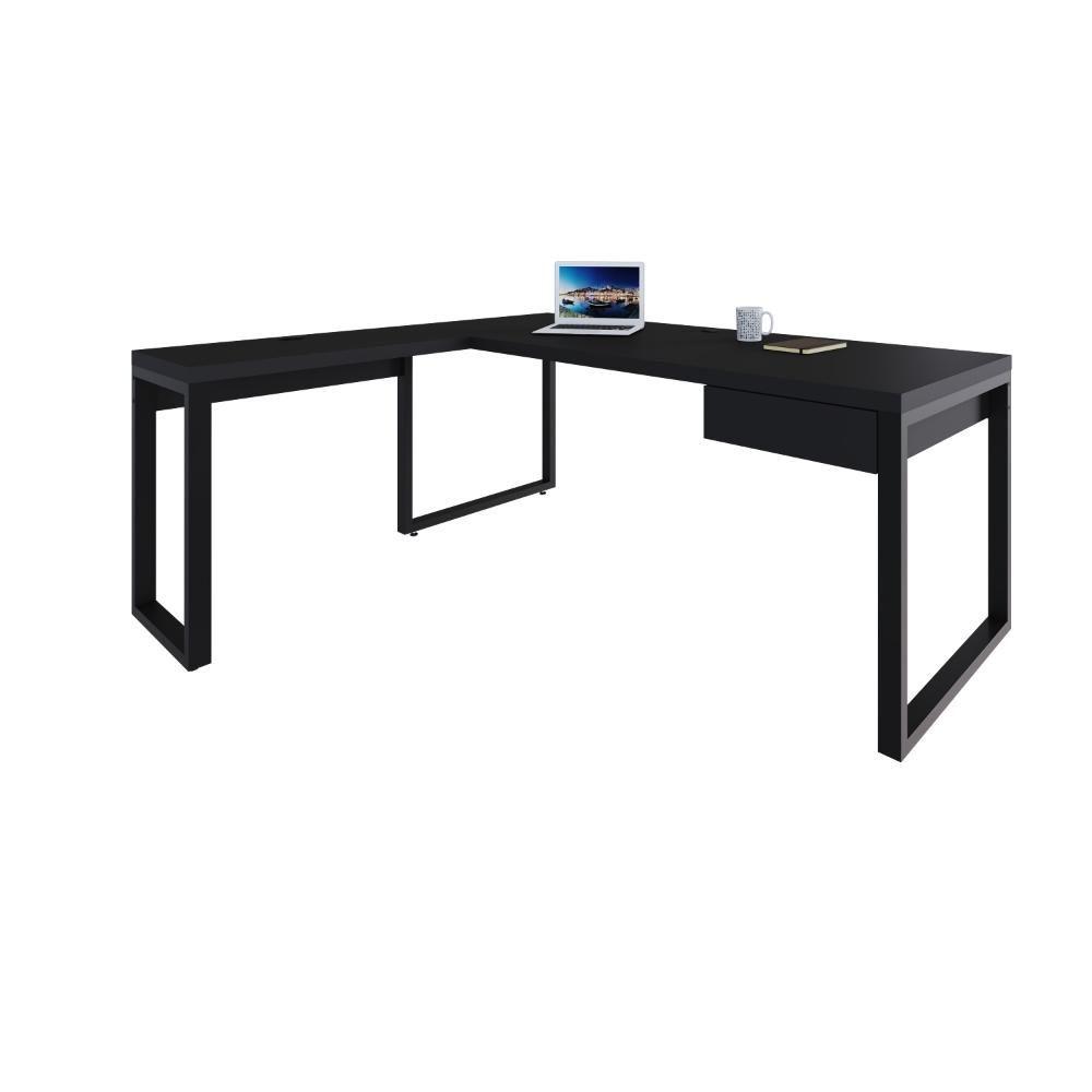 Mesa Em L Presidente C-01 Gav. 190x160x75cm Yon Preto Tx-est.preta Preto Tx-est.preta