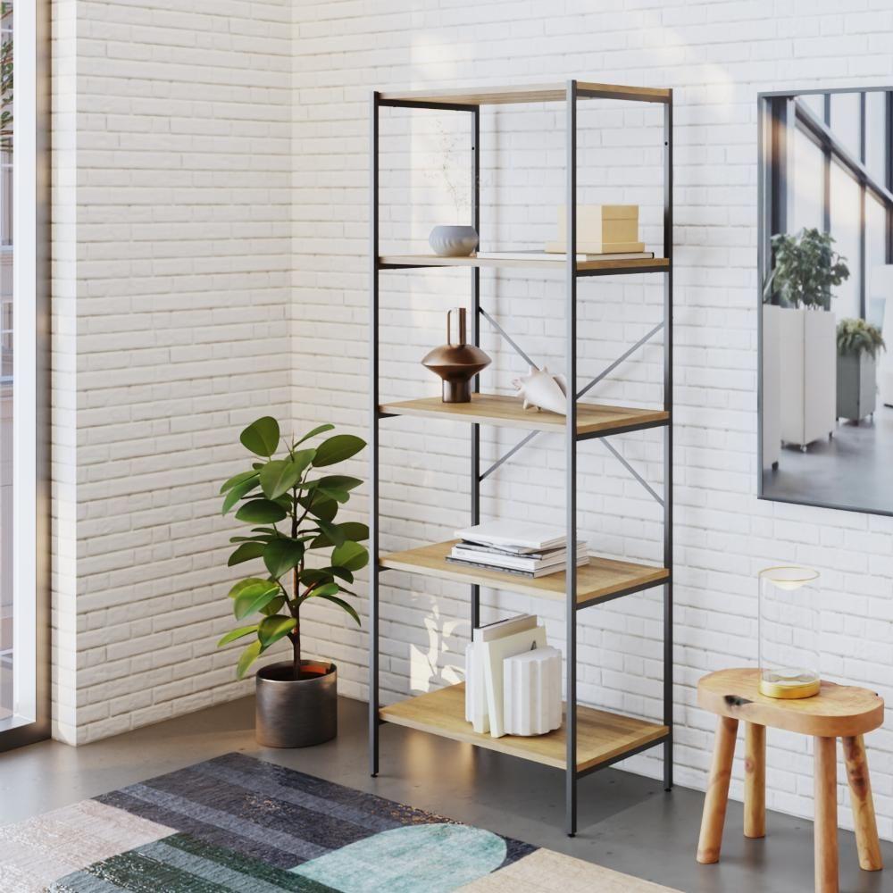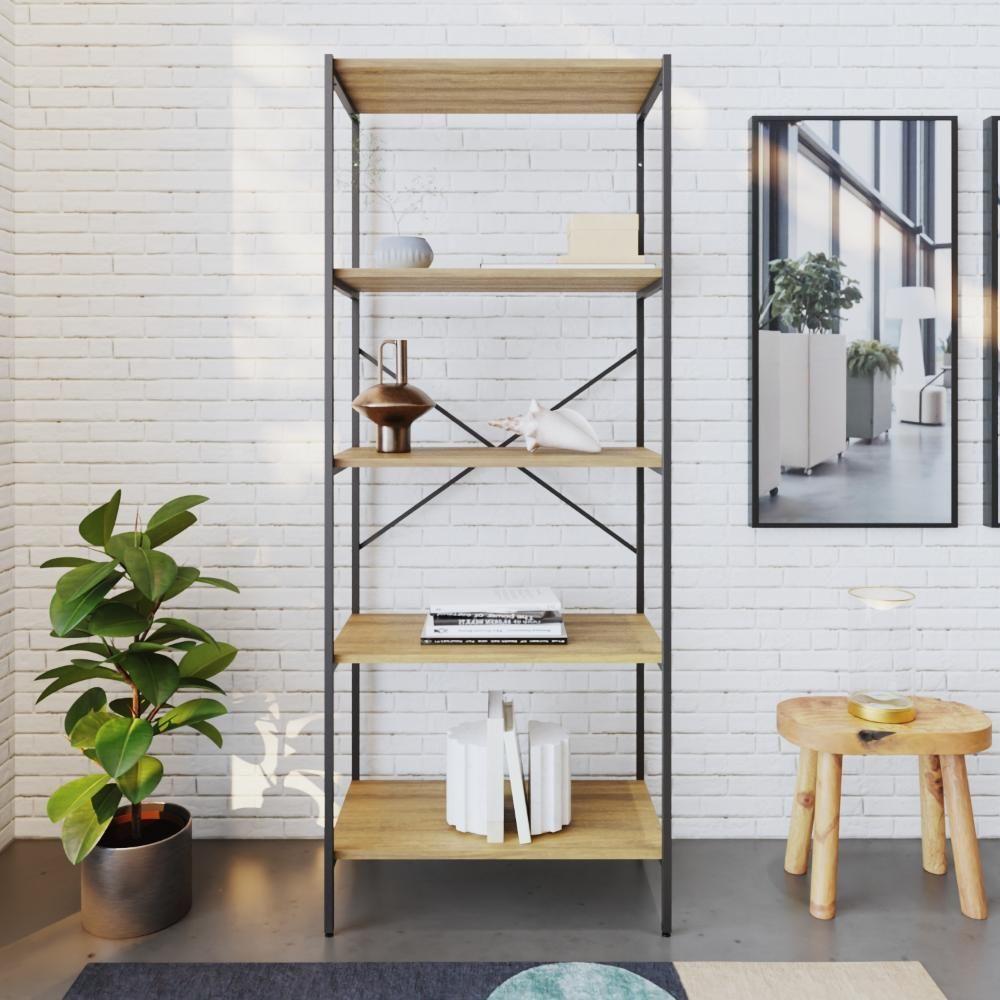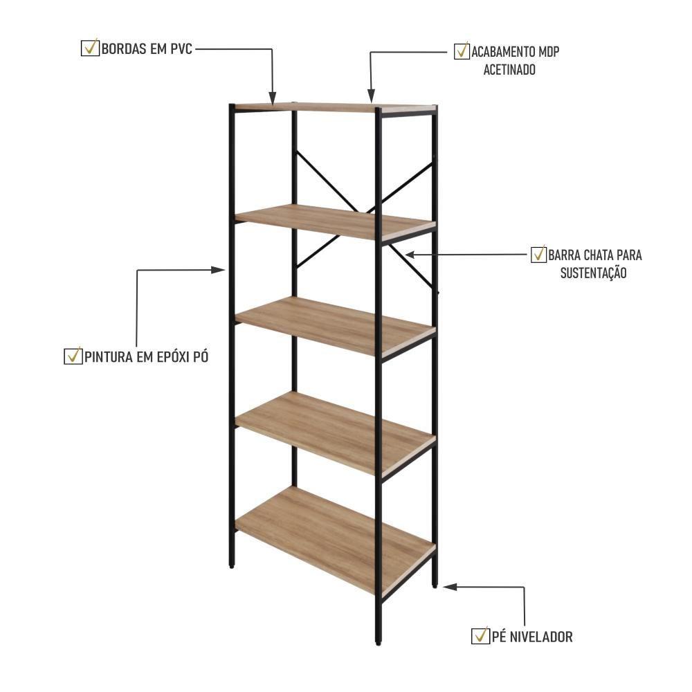 Estante C/05 Prateleiras 152x60x33cm Tub Tueh1565 Lâmina Mel - Est.preta Lâmina Mel / Est.preta