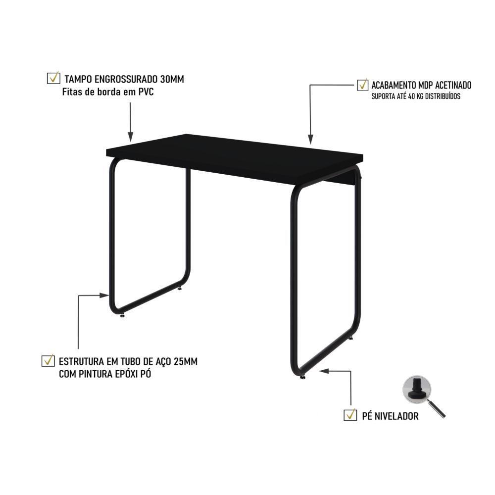 Mesa Office 90x60x75cm Round Preto ônix - Est.preta Preto ônix - Est.preta