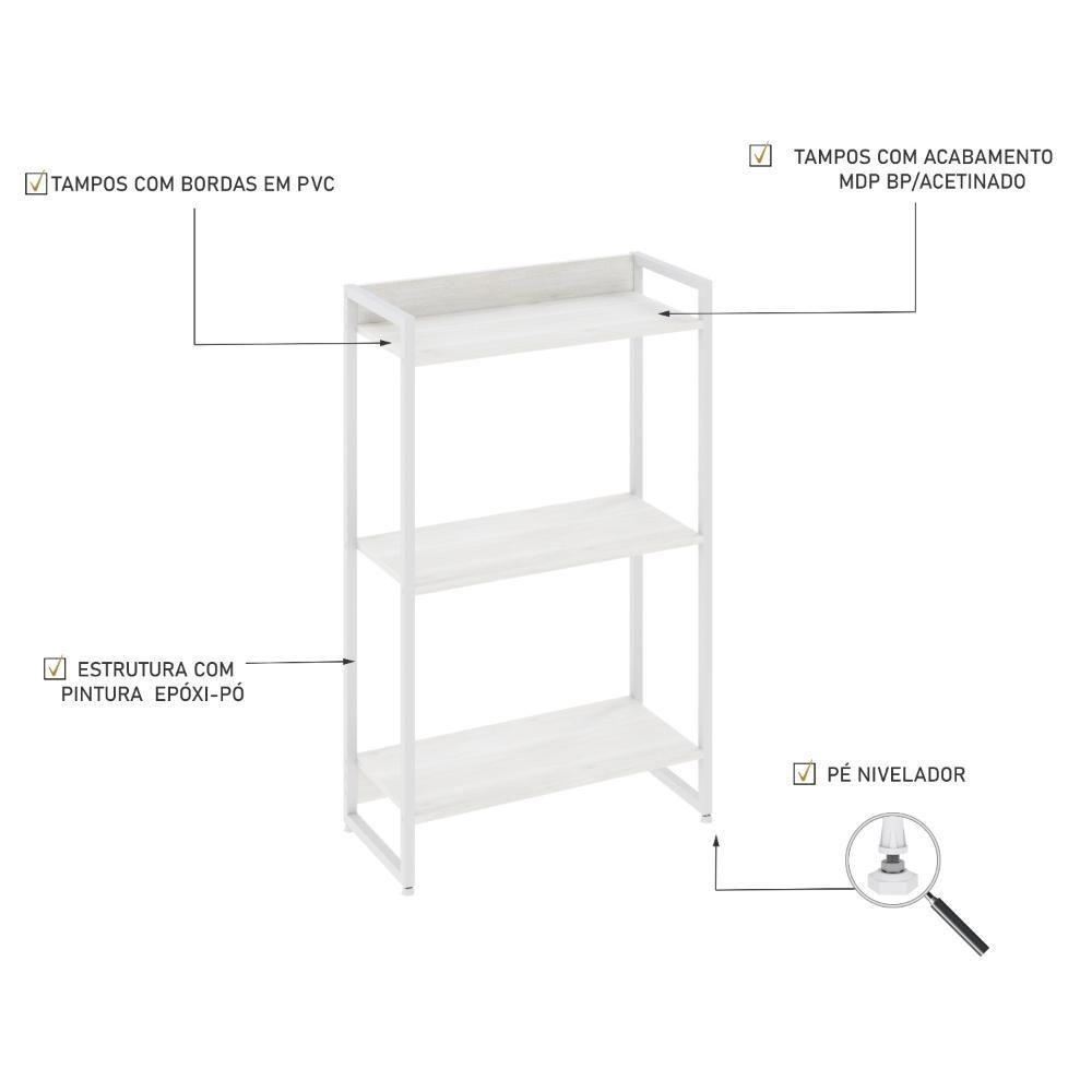 Estante Dynamica 60x30x104cm C/03 Prateleiras Snow / Est.branca Snow / Est.branca