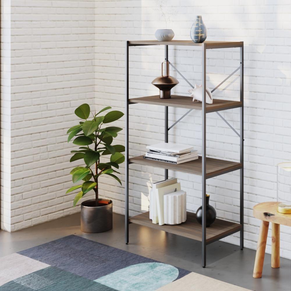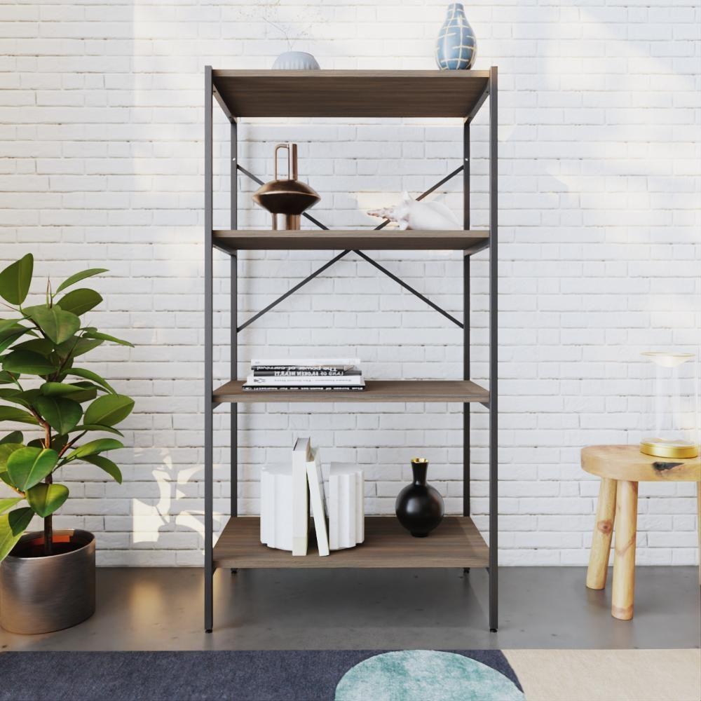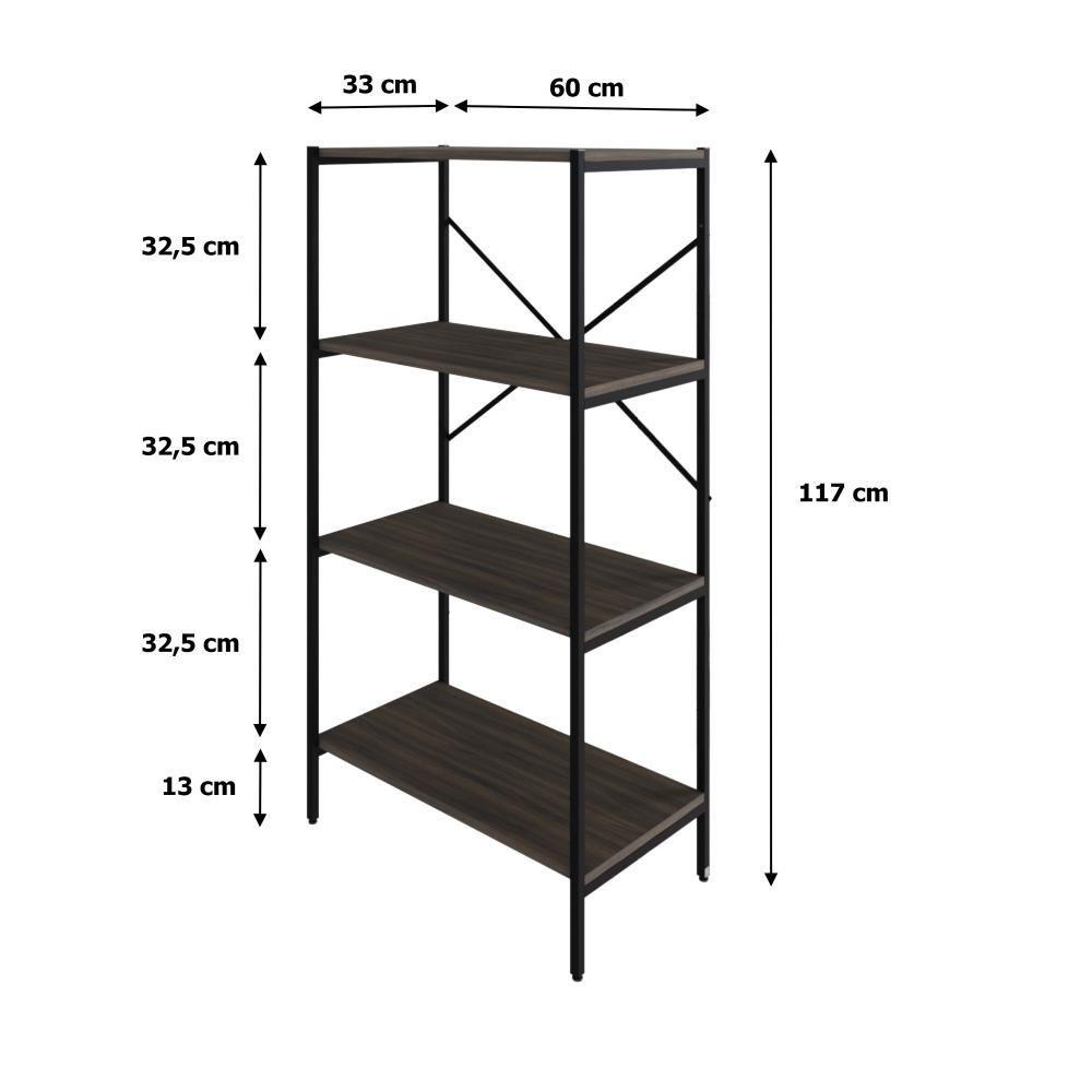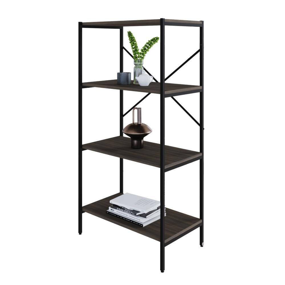 Estante C/04 Prateleiras 118x60x33cm Tub Tueh1164 Nogal - Est.preta Nogal / Est.preta