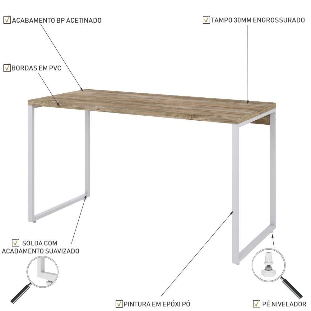 Mesa Kuadra Office 135x60x75cm Carvalho - Est.branca Carvalho - Est.branca