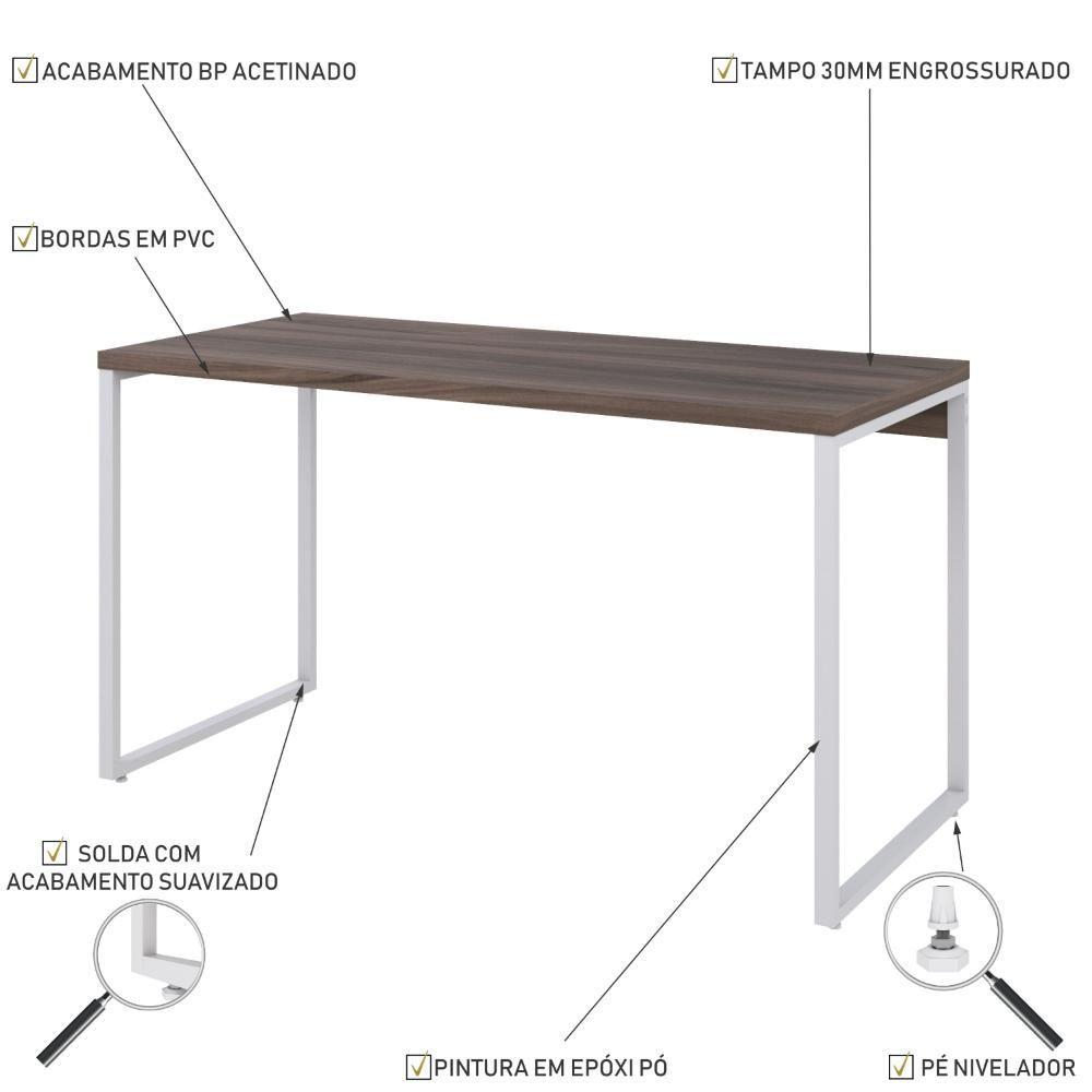 Mesa Kuadra Office 135x60x75cm Nogal - Est.branca Nogal - Est.branca