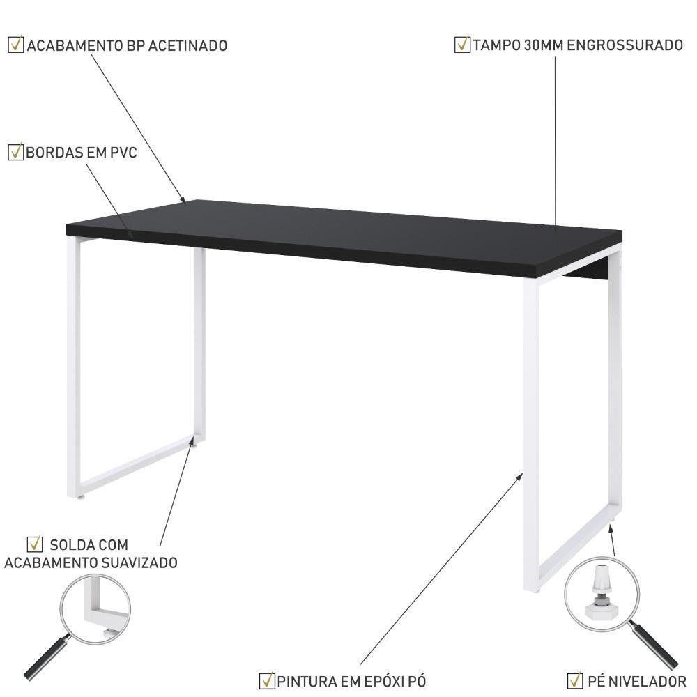 Mesa Kuadra Office 135x60x75cm Preto ônix - Est.branca Preto ônix - Est.branca