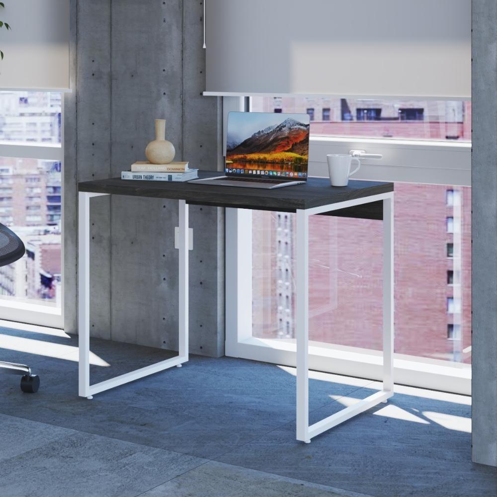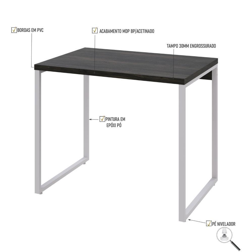 Mesa Kuadra Office 90x60x75cm Carvalho Dark - Est.branca Carvalho Dark - Est.branca