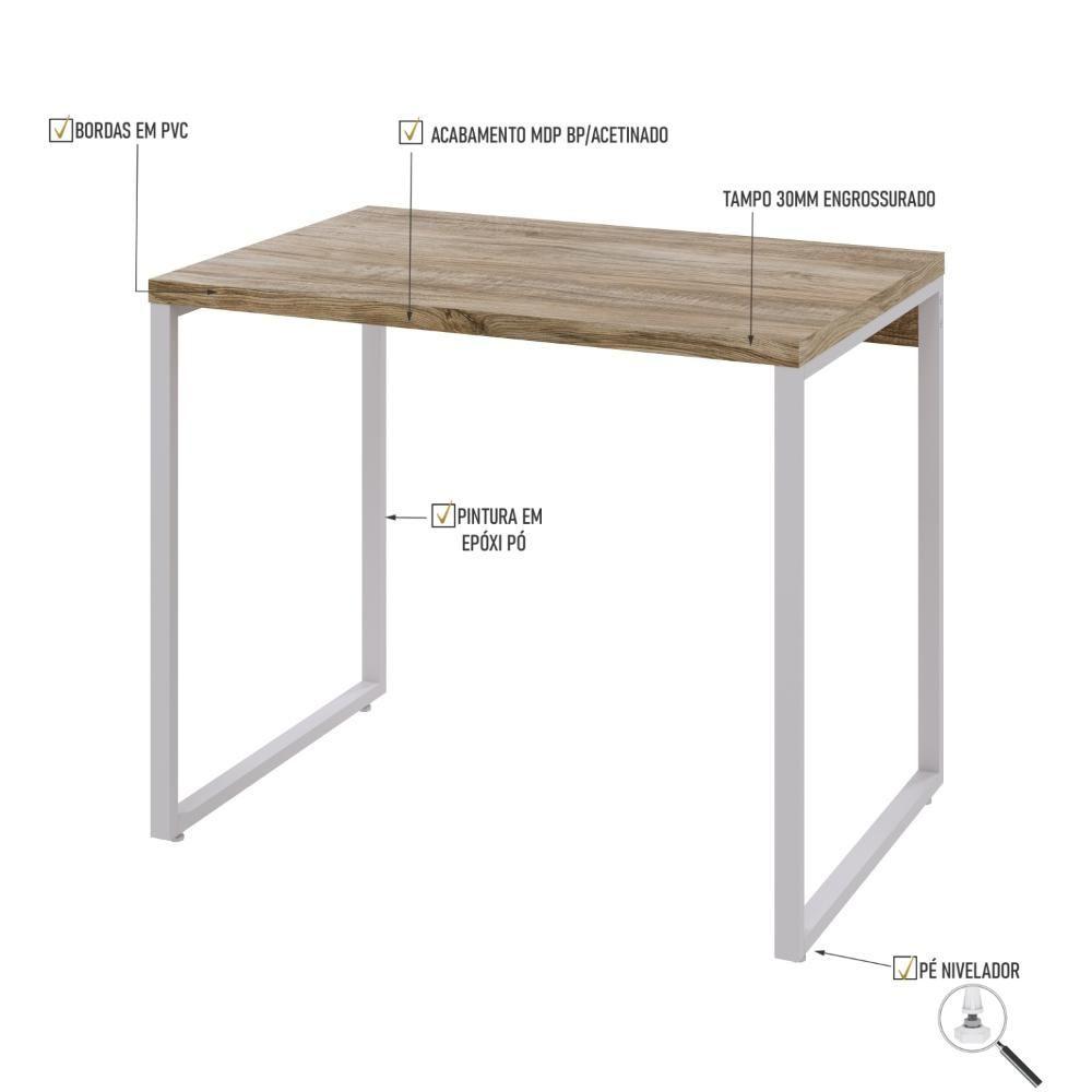 Mesa Kuadra Office 90x60x75cm Carvalho - Est.branca Carvalho - Est.branca