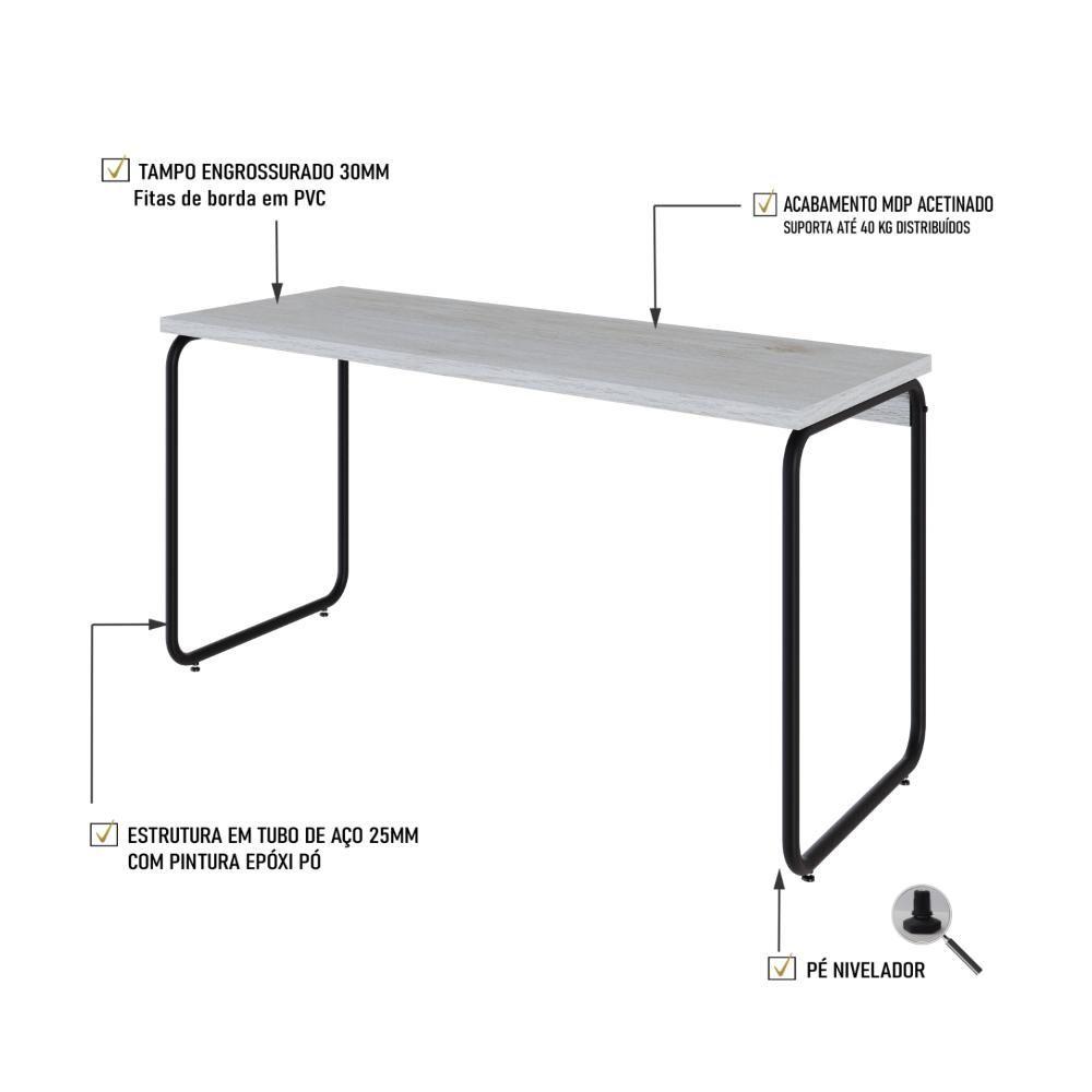 Mesa Office 135x60x75cm Round Snow - Est.preta Snow - Est.preta