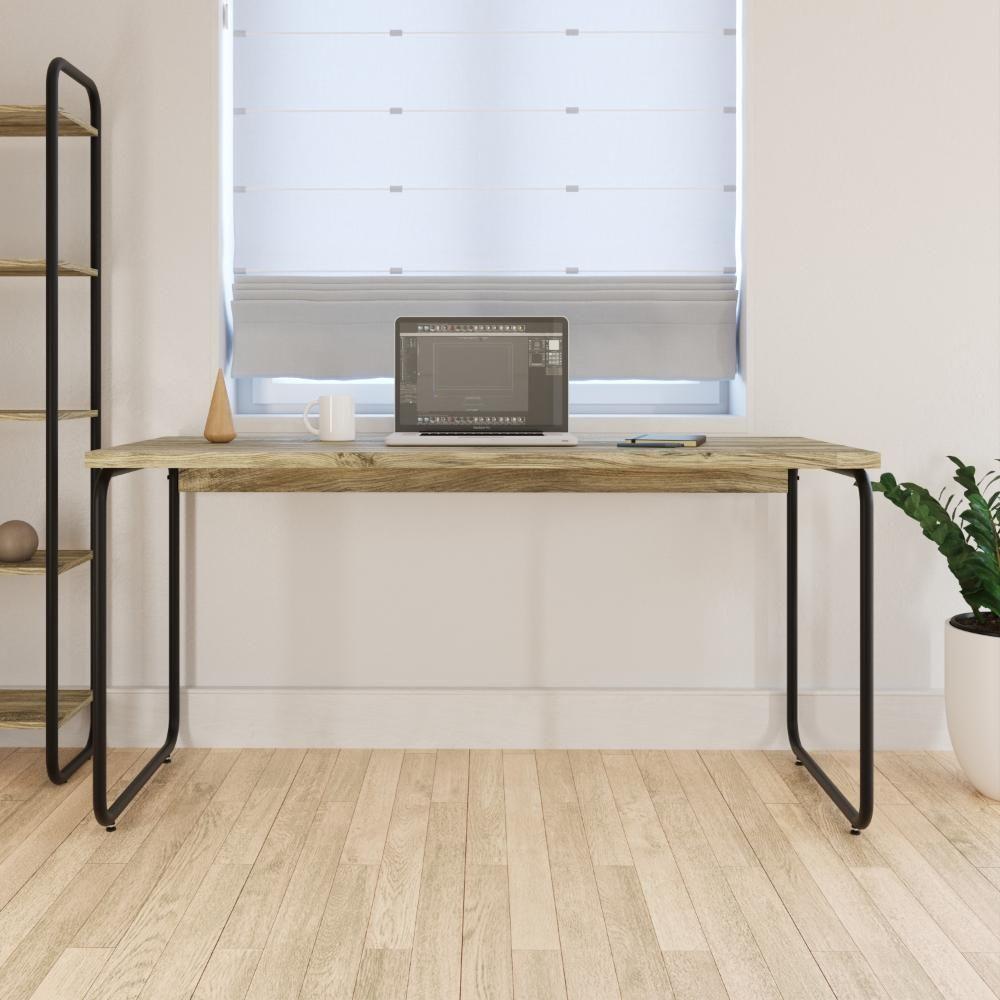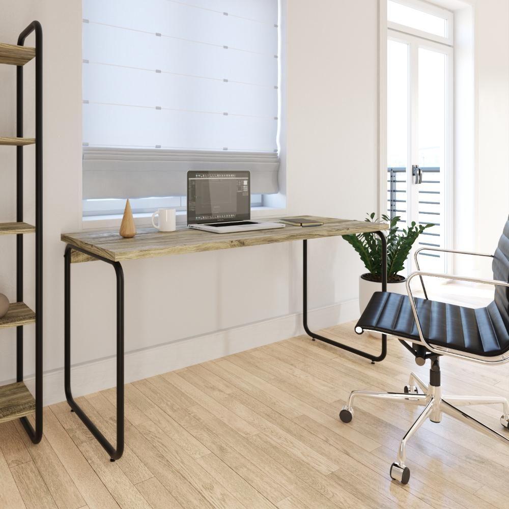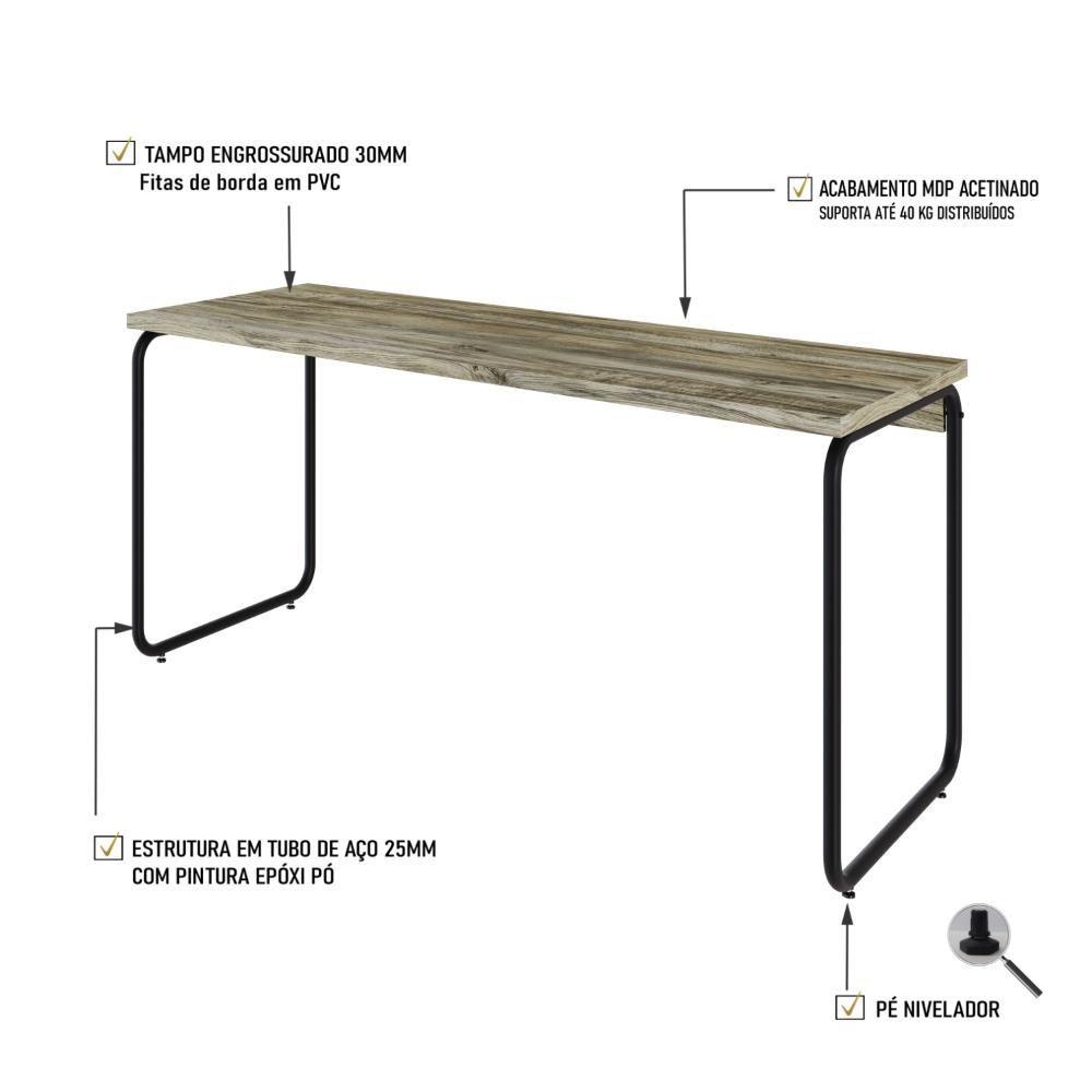 Mesa Office 150x60x75cm Round Carvalho - Est.preta Carvalho - Est.preta