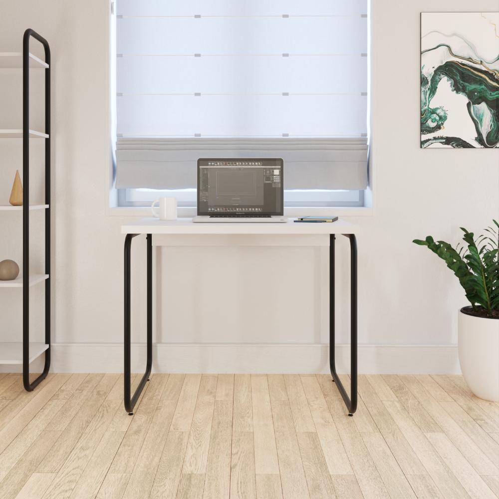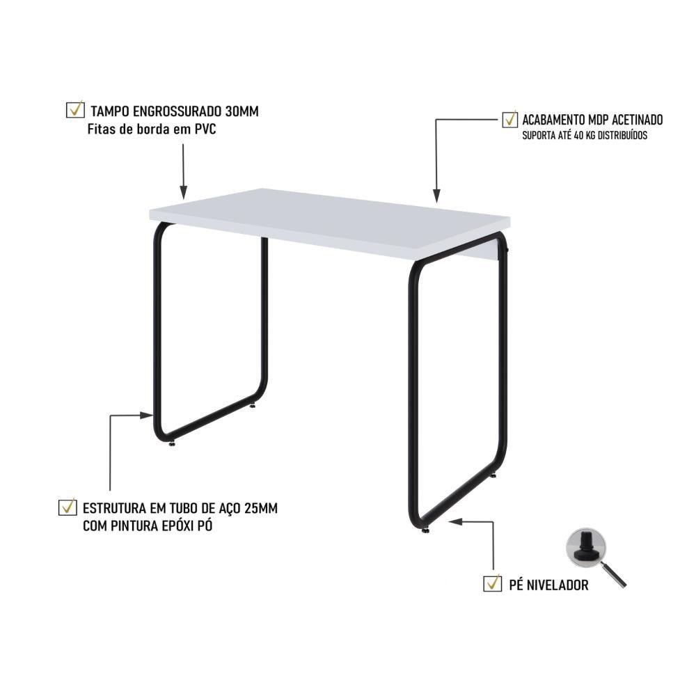 Mesa Office 90x60x75cm Round Branco Chess - Est.preta Branco Chess - Est.preta