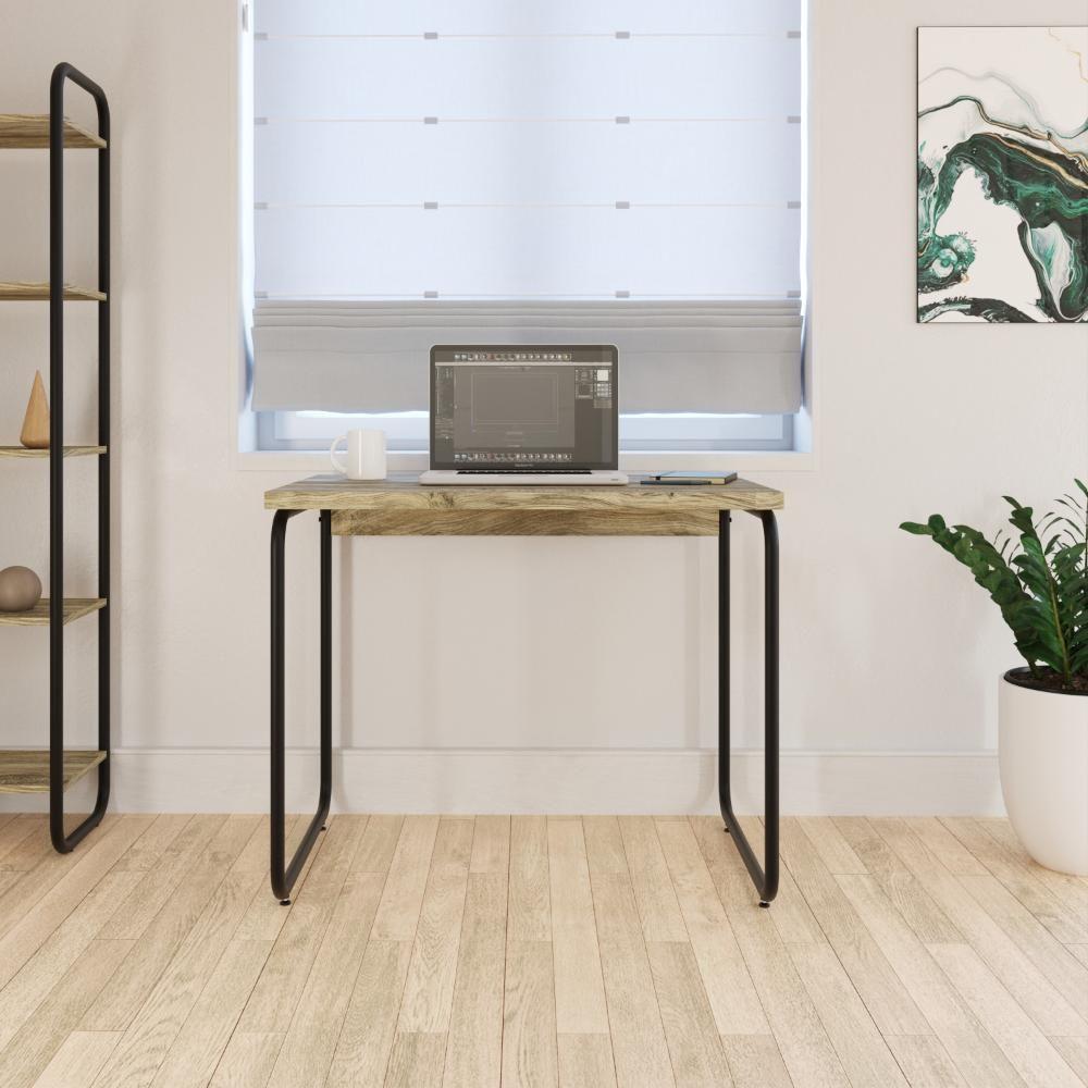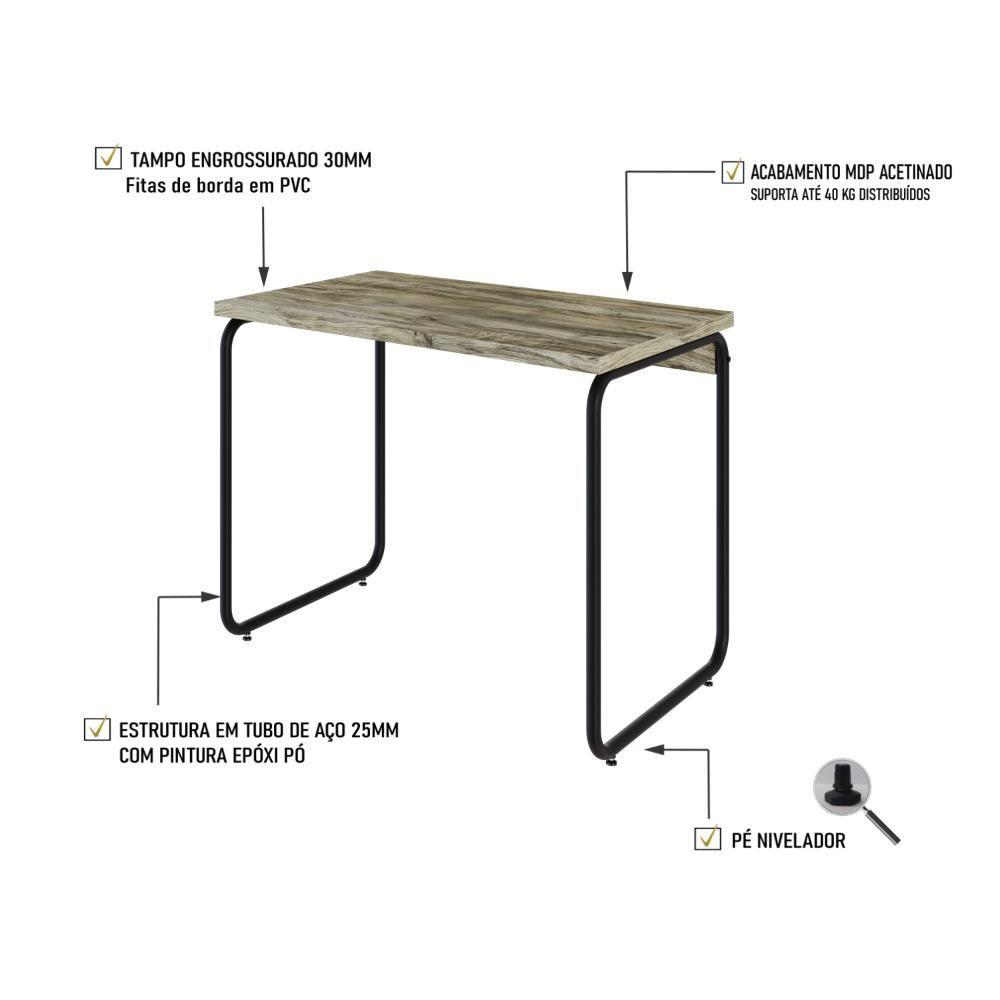 Mesa Office 90x60x75cm Round Carvalho - Est.preta Carvalho - Est.preta