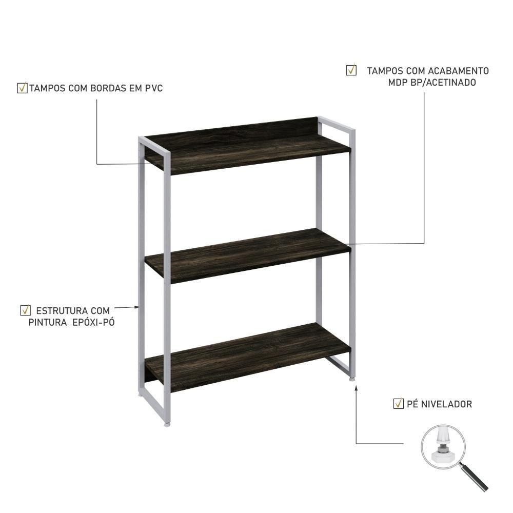 Estante Dynamica 80x30x104cm C/03 Prateleiras Carvalho Dark / Carvalho Dark / Sobre o ProdutoEstante Dynamica 80X30X104cm C/03 Prateleiras Carvalho / Est.BrancaDescrição do Produto:A Estante Dynamica DYES83 é um produto prático e versátil, que pode ser utilizado em diversos ambientes, como quarto e escritório, na sala, cozinha ou seu depó Linha Dynamica reúne design minimalista e praticidade, traços retos e móveis versáteis são as características dessa coleção. As estruturas metálicas possuem pintura Epóxi e sapatas niveladoras e, nos tampos, MDP BP Acetinado com fitas de borda em PVC. Itens Inclusos:1 EstanteDimensões dos Produtos:Estante Dynamica 80X30X104cm C/03 Prateleiras Carvalho / 80 x 30 x 104 cmInformações Logísticas (Comp. X Prof. X Alt.) 106 x 34 x 11 cm - Peso: 11,289 KgPeso Total: 11,289 KgObservações:Não acompanha acessórios decorativos. Imagens meramente ilustrativas.Informações Técnicas / Características:- Cor do Produto: Carvalho / - Marca: Compace- Modelo: DYES83- Linha: Dynamica- Material: Mdp- Material da Estrutura / Pés: Aço- Acabamento: BP Acetinado- Escala de Brilho: Fosco- Fita de Borda: Pvc- Possui Portas: Não - Possui Prateleiras: 3- Peso Máximo por Prateleira: 08 kg- Possui Pés: 2- Pés Niveladores: Sim - Acabamento Estrutura: Epóxi-Pó Texturizado - Suporta Até (kg): 24 kg- Comprimento: 80cm- Profundidade: 30cm- Altura: 104cm - Peso Lí.: 10,655Kg- Recomendações de Uso, Manutenção e Limpeza: Para a limpeza, utilize flanela seca ou pano macio levemente umedecido em água. Utilize um pano seco em seguida. Evite com produtos químicos (solventes, thinner, acetona, etc) e não utilize nenhum tipo de esponja de aço.- Necessita de Montagem: Sim / Acompanha Manual de Montagem- Complexidade da Montagem: Média: pode ser montado por mais de uma pessoa e/ou necessite de maior conhecimento para montagem.- Garantia: 6 meses Material: Mdp | Acabamento: BP Acetinado | Escala de Brilho: Fosco | Fita de Borda: Pvc | Material da Estrutura: Aço | Acabamento da Estrutura: Epóxi-Pó Texturizado | Produto: Estante | Cômodo indicado: Escritórios | Cor: Multicolorido | Tonalidade: Multicolorido | Quantidade de itens: 1 | Principais Características do Produto 0: Aço | do modelo: DYES83 | Certificação de teste externa: Não aplicável | Baterias são necessárias?: false | Palavras-chave de Pesquisa: Não Aplicável | Principais Características do Produto 1: MDP | da peça: DYES83 | de caixas: 1 | Principais Características do Produto 2: Pvc | Componentes incluídos: Manual de montagem e kit acessórios | Exige montagem: true | Fabricante: Compace | Peso do item: unit=kilograms; | Dimensões do item P x L x A: depth#value=30;width#value=80;depth#unit=centimeters;width#unit=centimeters;height#value=104;height#unit=centimeters Cor: Carvalho Dark /