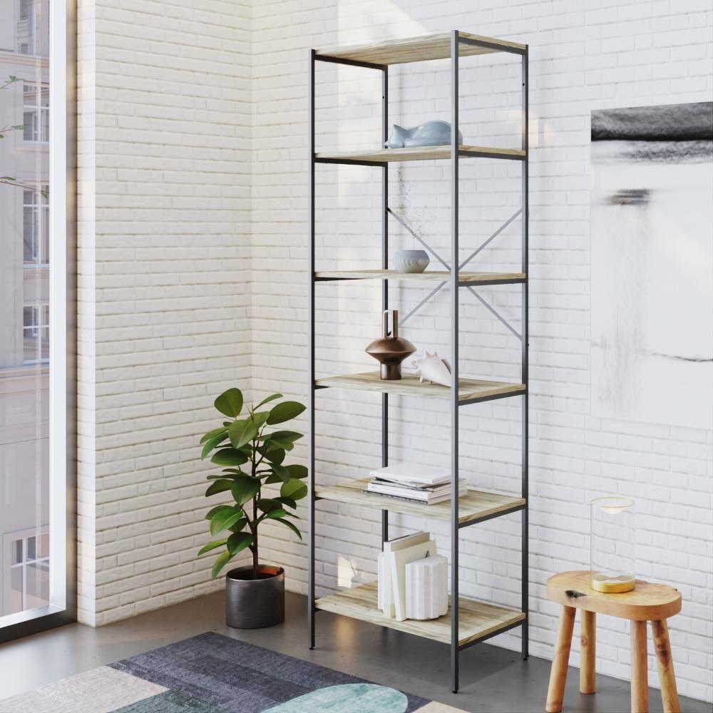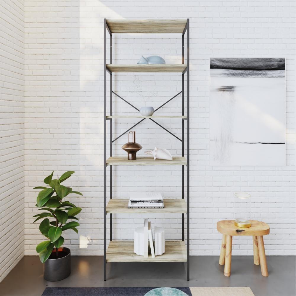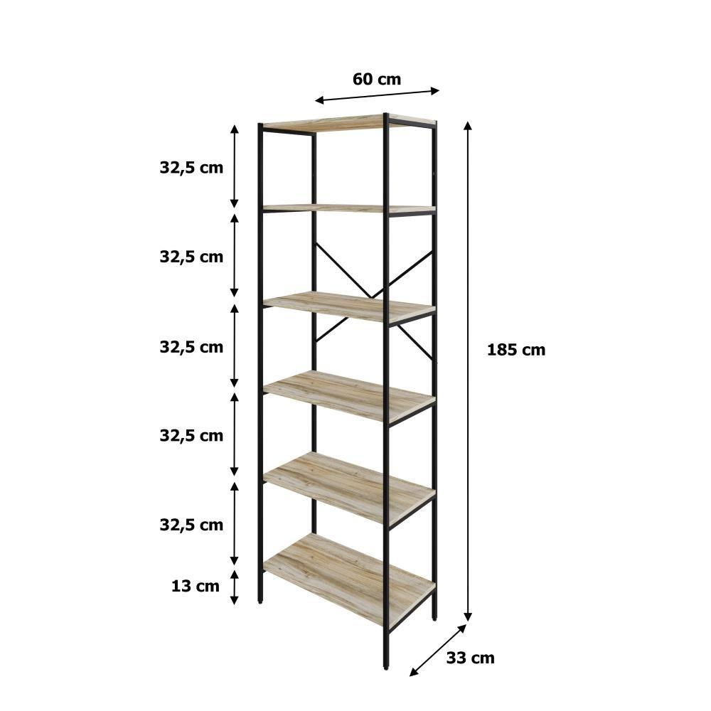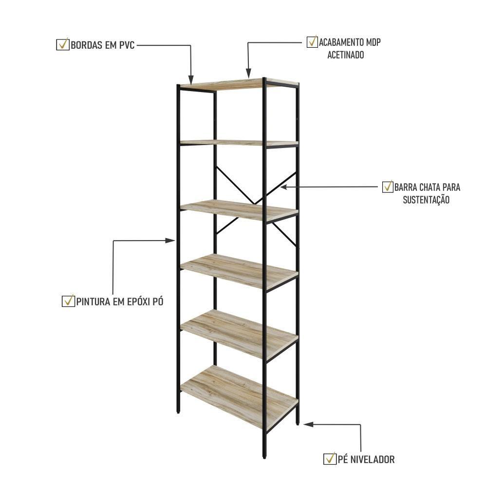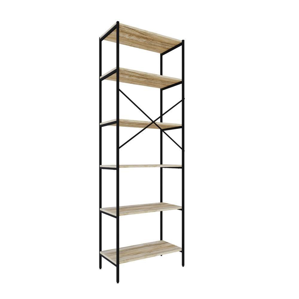 Estante C/06 Prateleiras 186x60x33cm Tub Tueh1866 Carvalho - Est.preta Carvalho / Est.preta