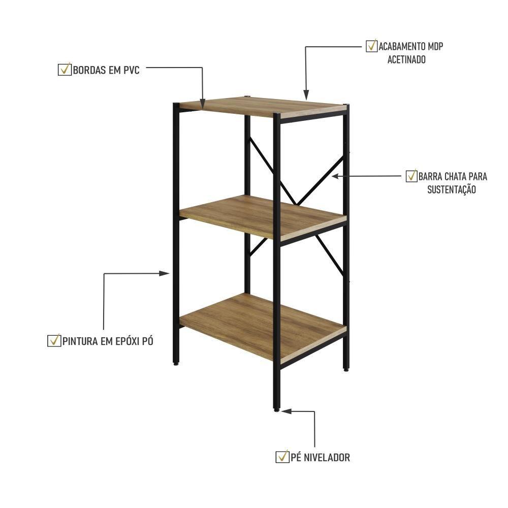 Estante C/03 Prateleiras 84x45x33cm Tub Tueh843 Lâmina Mel - Est.preta Lâmina Mel / Est.preta