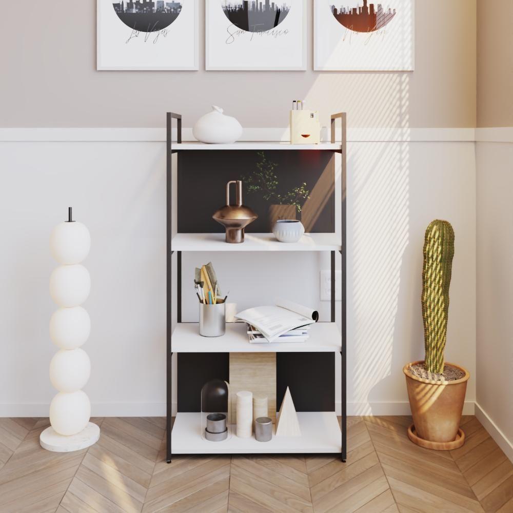 Estante C/04 Prateleiras 118x60x33cm C/fundo Yon Branco Tx/est.preta Branco Tx/est.preta