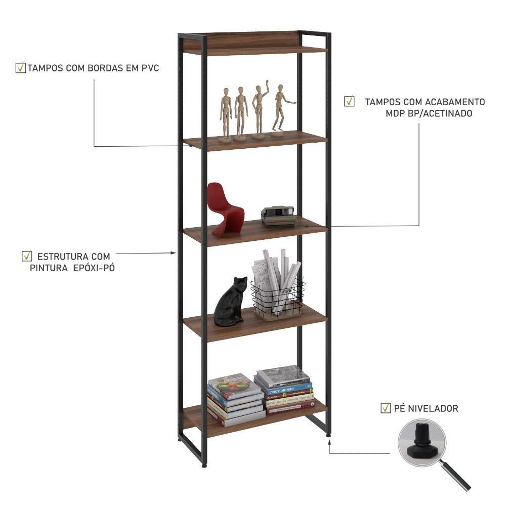 Estante Dynamica 60x30x187cm C/05 Prateleiras Nogal / Est.preta Nogal / Est.preta