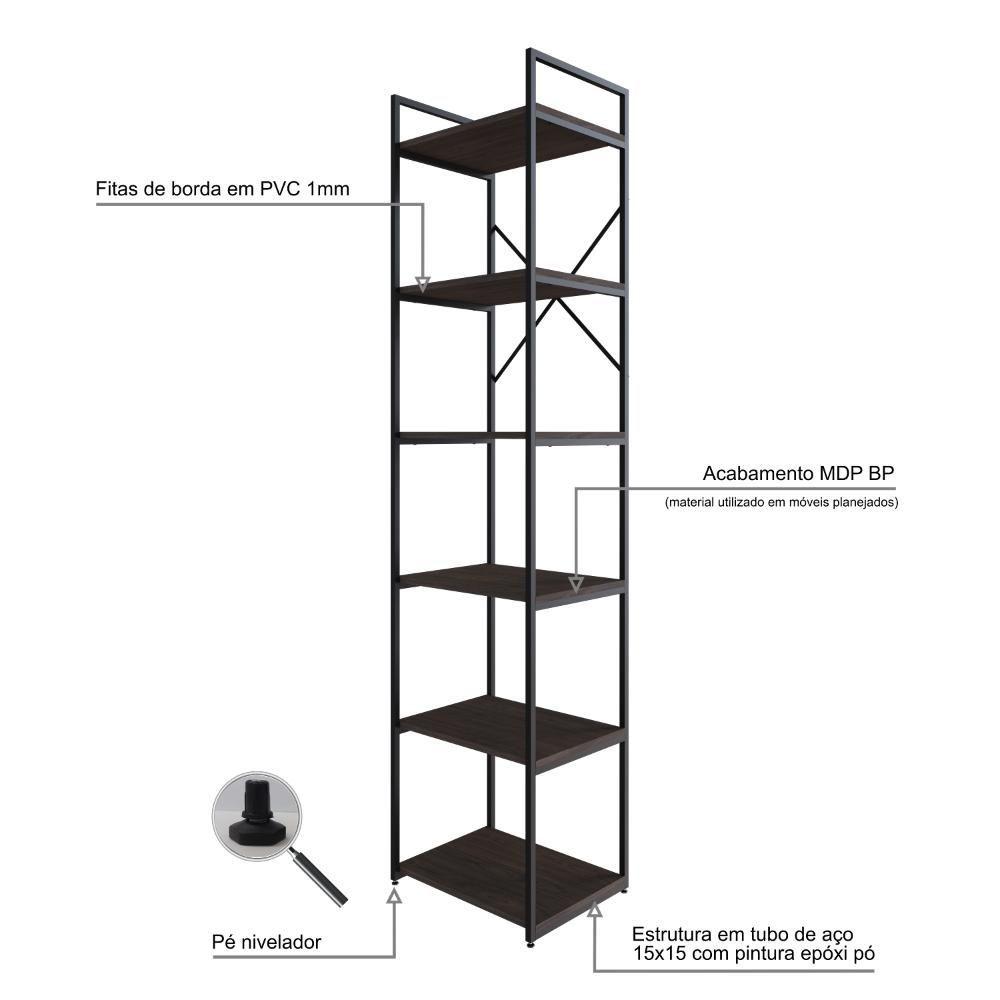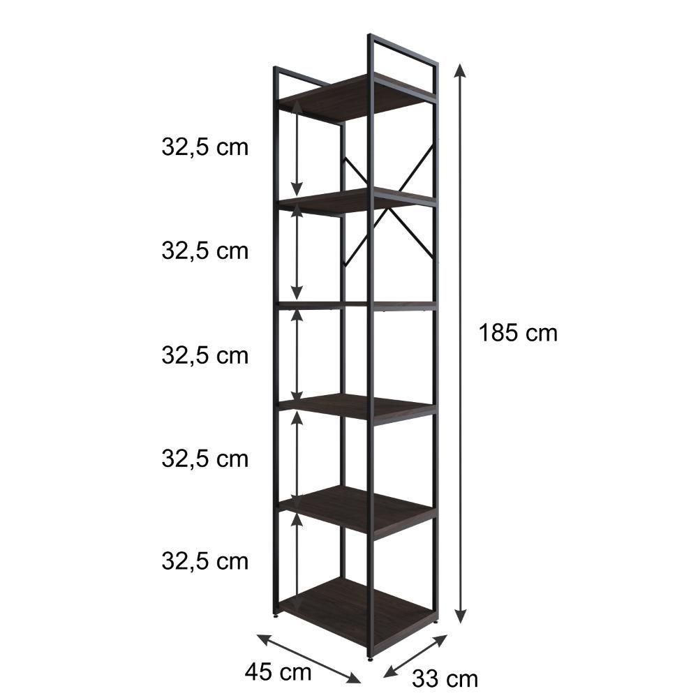Estante Alta C/06 Prateleiras 185x45x33cm Yon Terracota/est.preta Terracota/est.preta