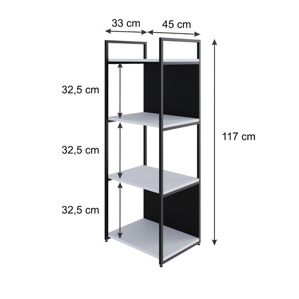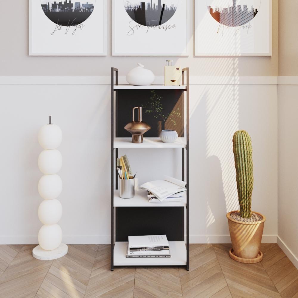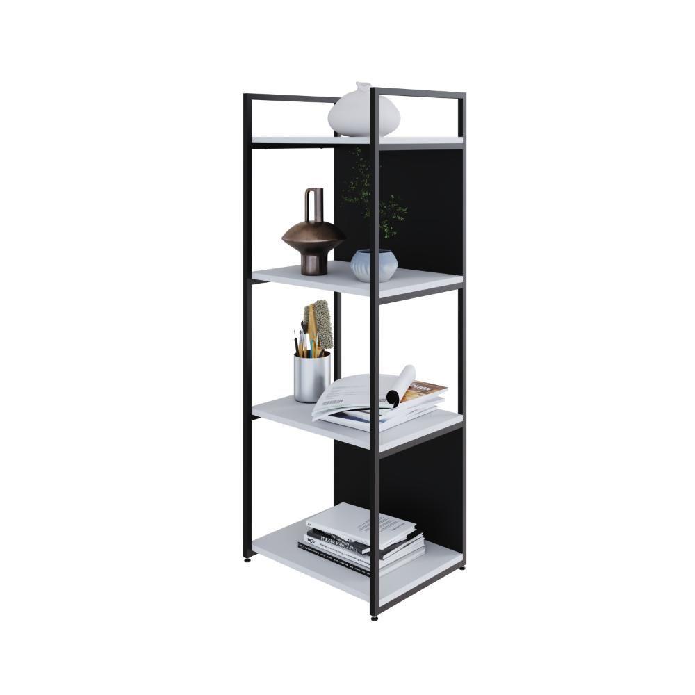 Estante C/04 Prateleiras 118x45x33cm C/fundo Yon Branco Tx/est.preto Branco Tx/est.preta