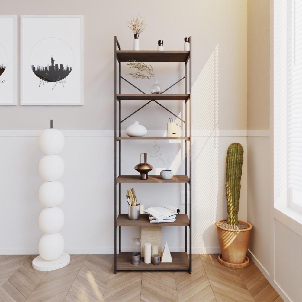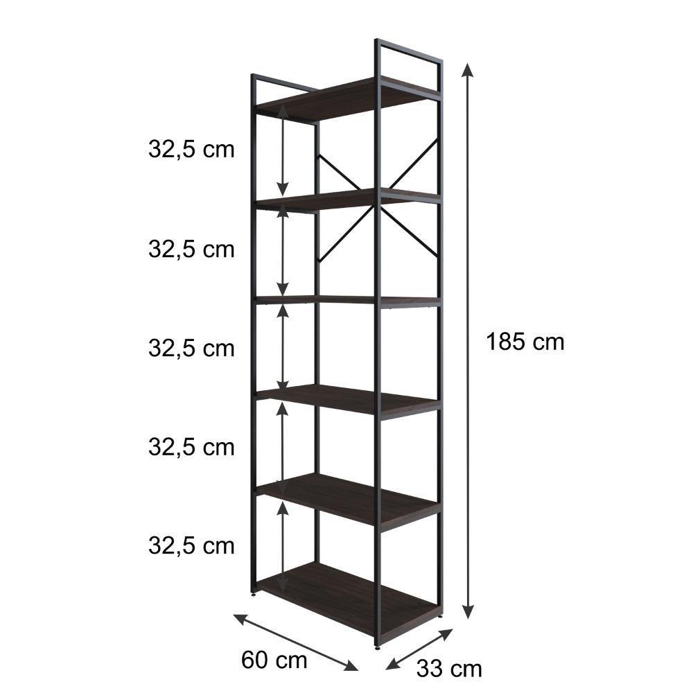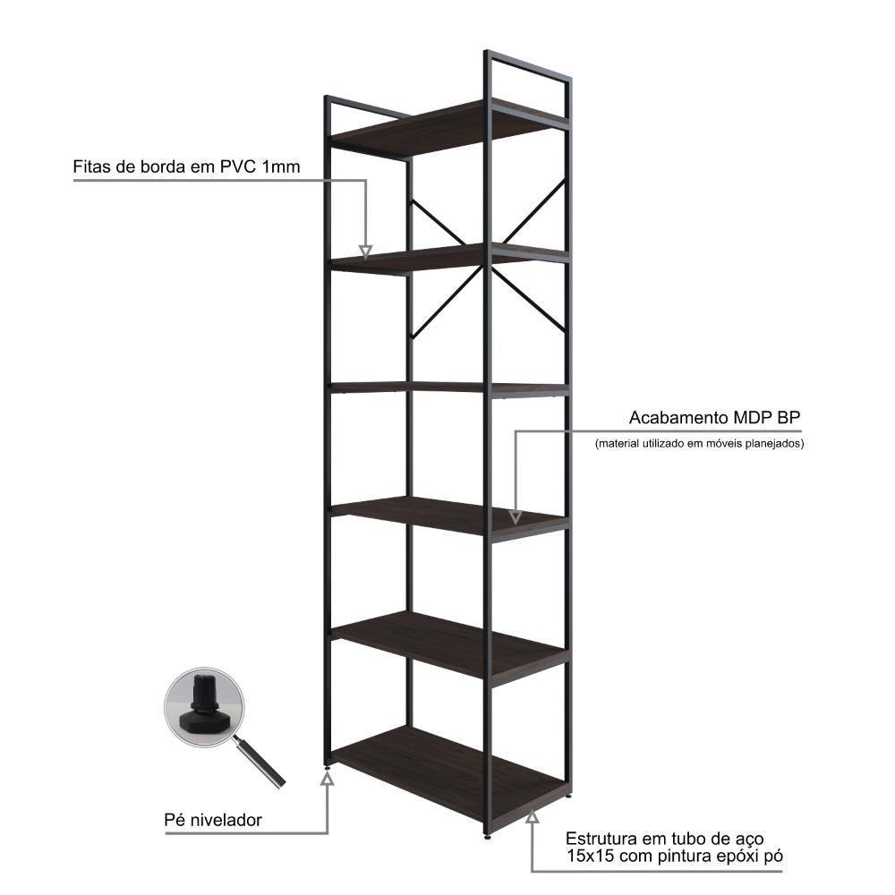 Estante Alta C/06 Prateleiras 185x60x33cm Yon Terracota/est.preta Terracota/est.preta