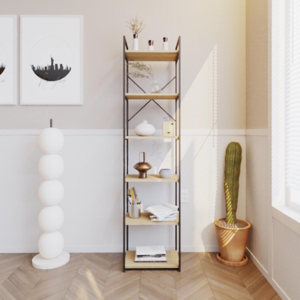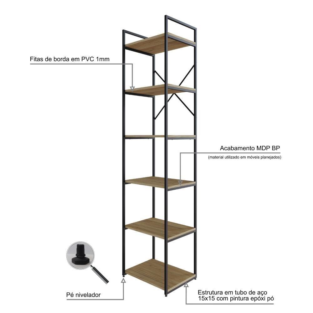 Estante Alta C/06 Prateleiras 185x45x33cm Yon Vermont Oak/est.preta Vermont Oak/est.preta