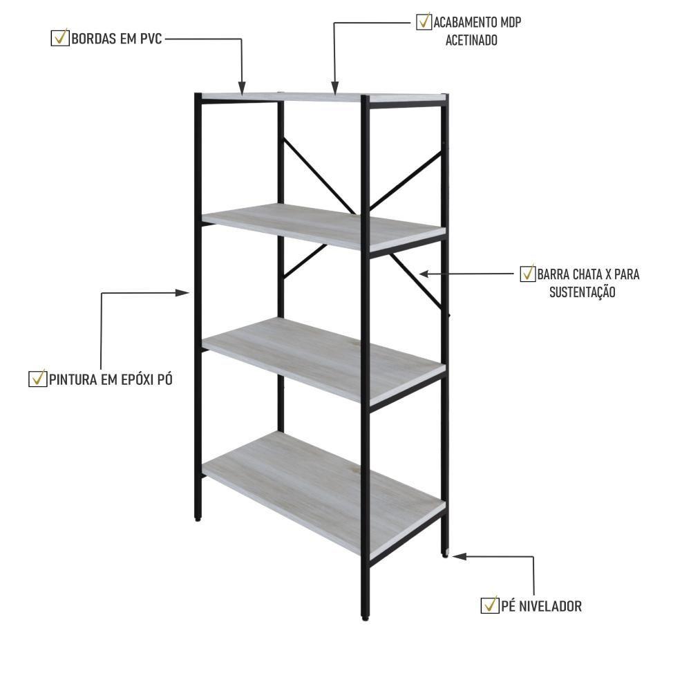 Estante C/04 Prateleiras 118x60x33cm Tub Tueh1164 Snow - Est.preta Snow / Est.preta