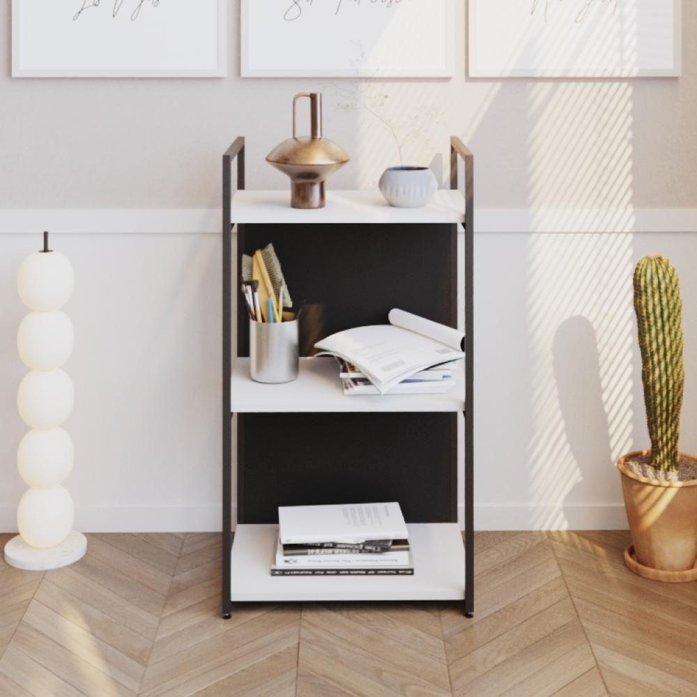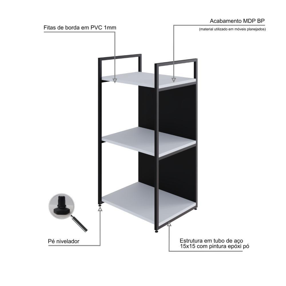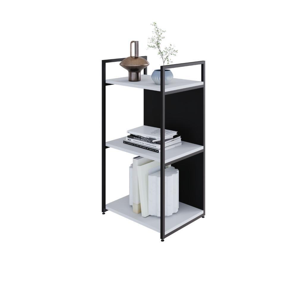 Estante C/03 Prateleiras 84x45x33cm C/fundo Yon Branco Tx/est.preta Branco Tx/est.preta