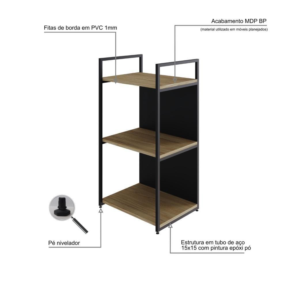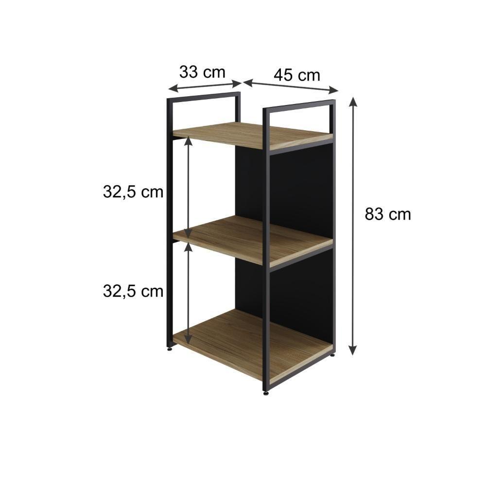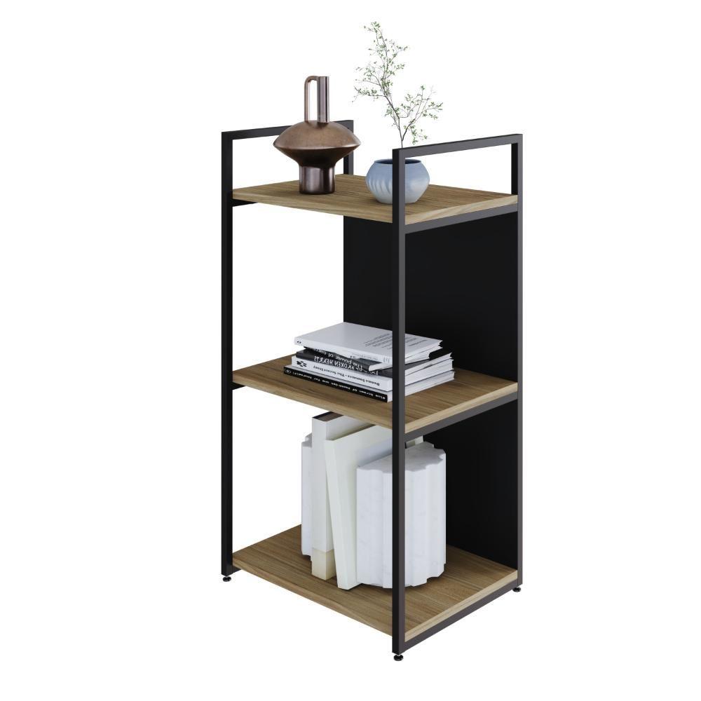 Estante C/03 Prateleiras 84x45x33cm C/fundo Yon Vermont Oak/est.preta Vermont Oak/est.preta