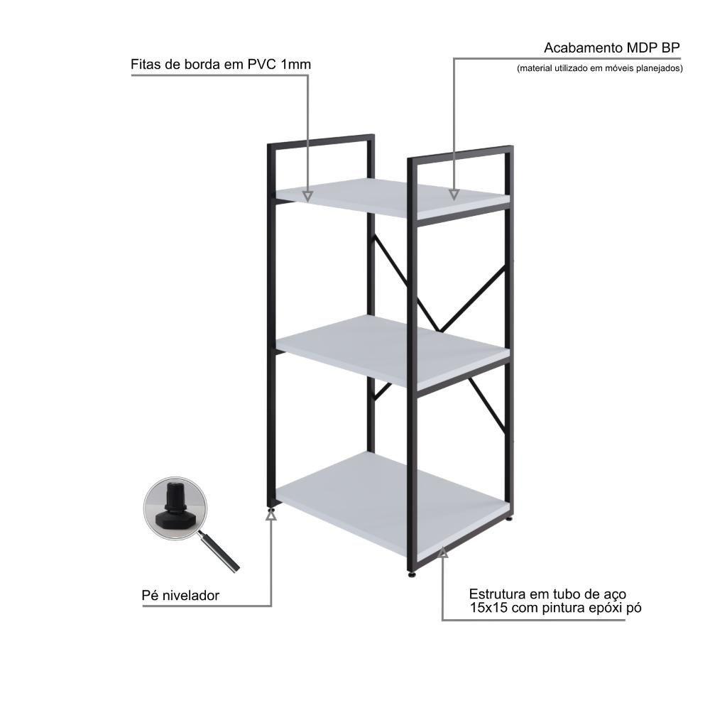 Estante C/03 Prateleiras 84x45x33cm Yon Branco Tx/est.preta Branco Tx/est.preta