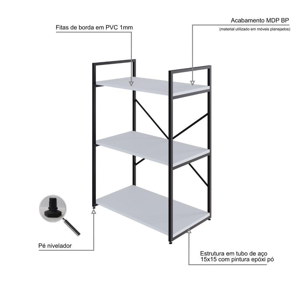 Estante C/03 Prateleiras 84x60x33cm Yon Branco Tx/est.preta Branco Tx/est.preta