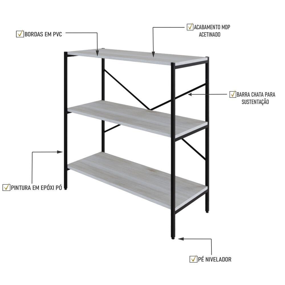 Estante C/03 Prateleiras 84x80x33cm Tub Tueh883 Snow - Est.preta Snow / Est.preta