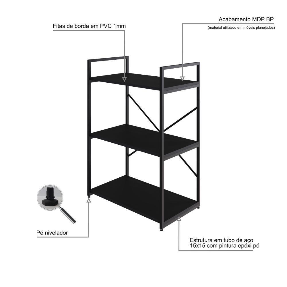 Estante C/03 Prateleiras 84x60x33cm Yon Preto Tx/est.preta Preto Tx/est.preta