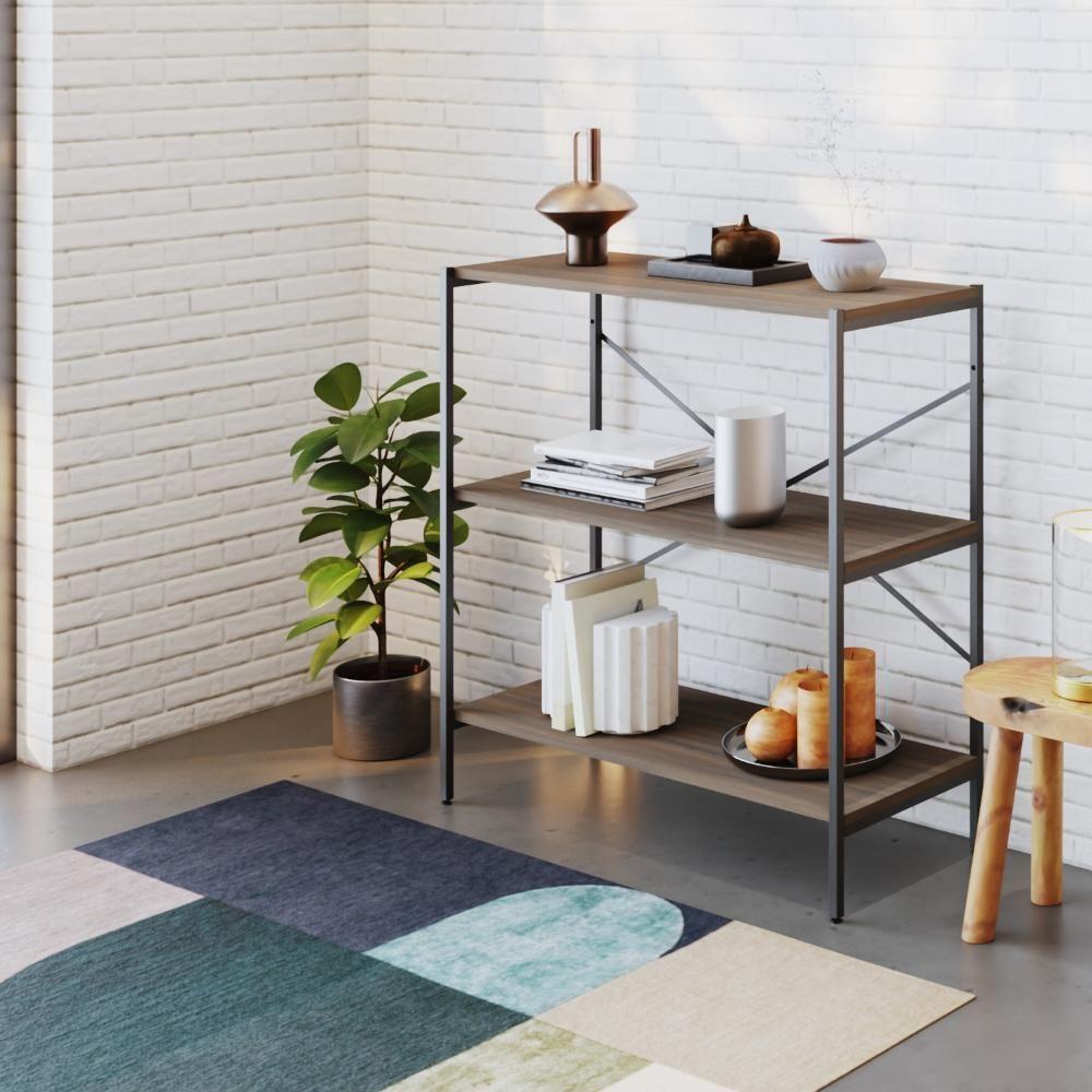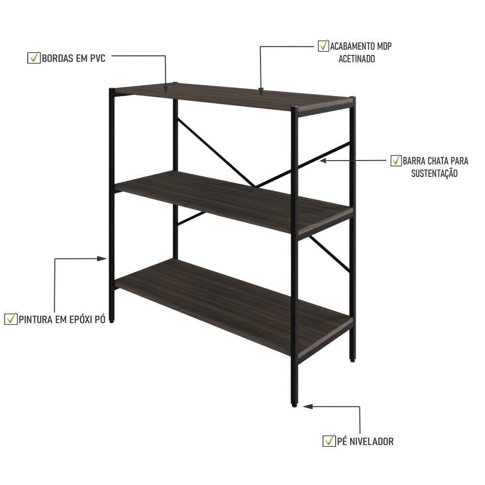 Estante C/03 Prateleiras 84x80x33cm Tub Tueh883 Nogal - Est.preta Nogal / Est.preta
