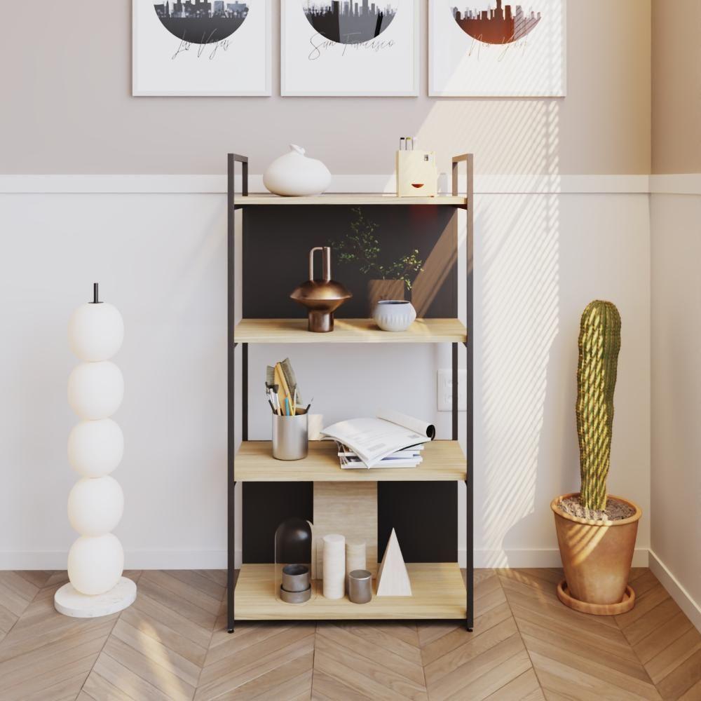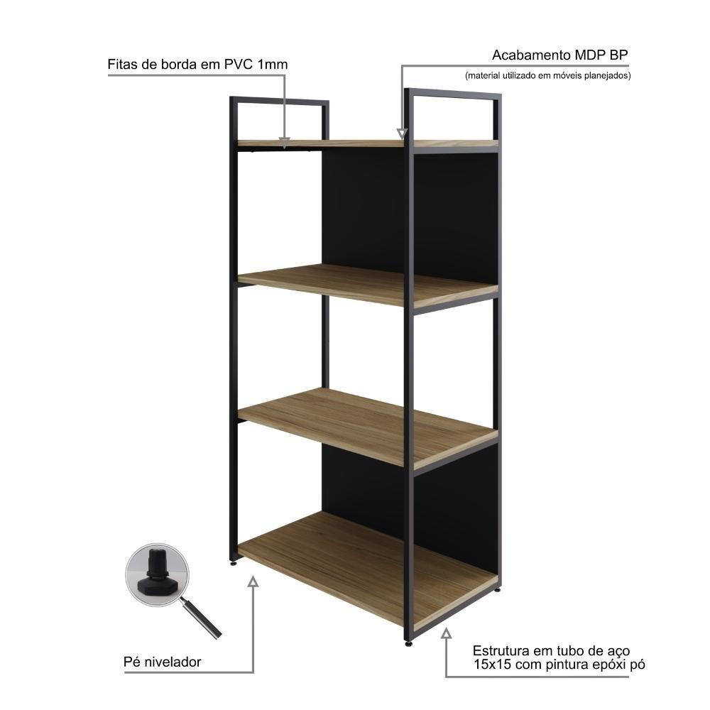Estante C/04 Prateleiras 118x60x33cm C/fundo Yon Vermont Oak/est.preta Vermont Oak/est.preta