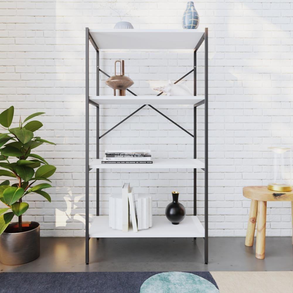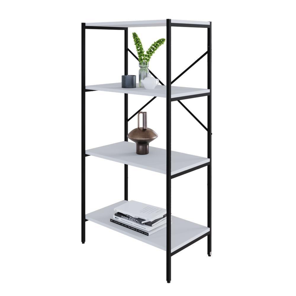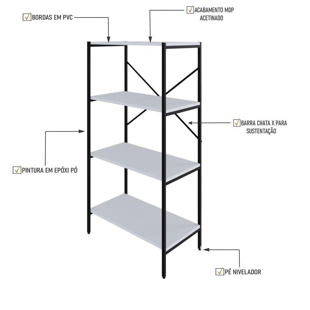 Estante C/04 Prateleiras 118x60x33cm Tub Tueh1164 Branco Chess - Est.preta Branco Chess / Est.preta