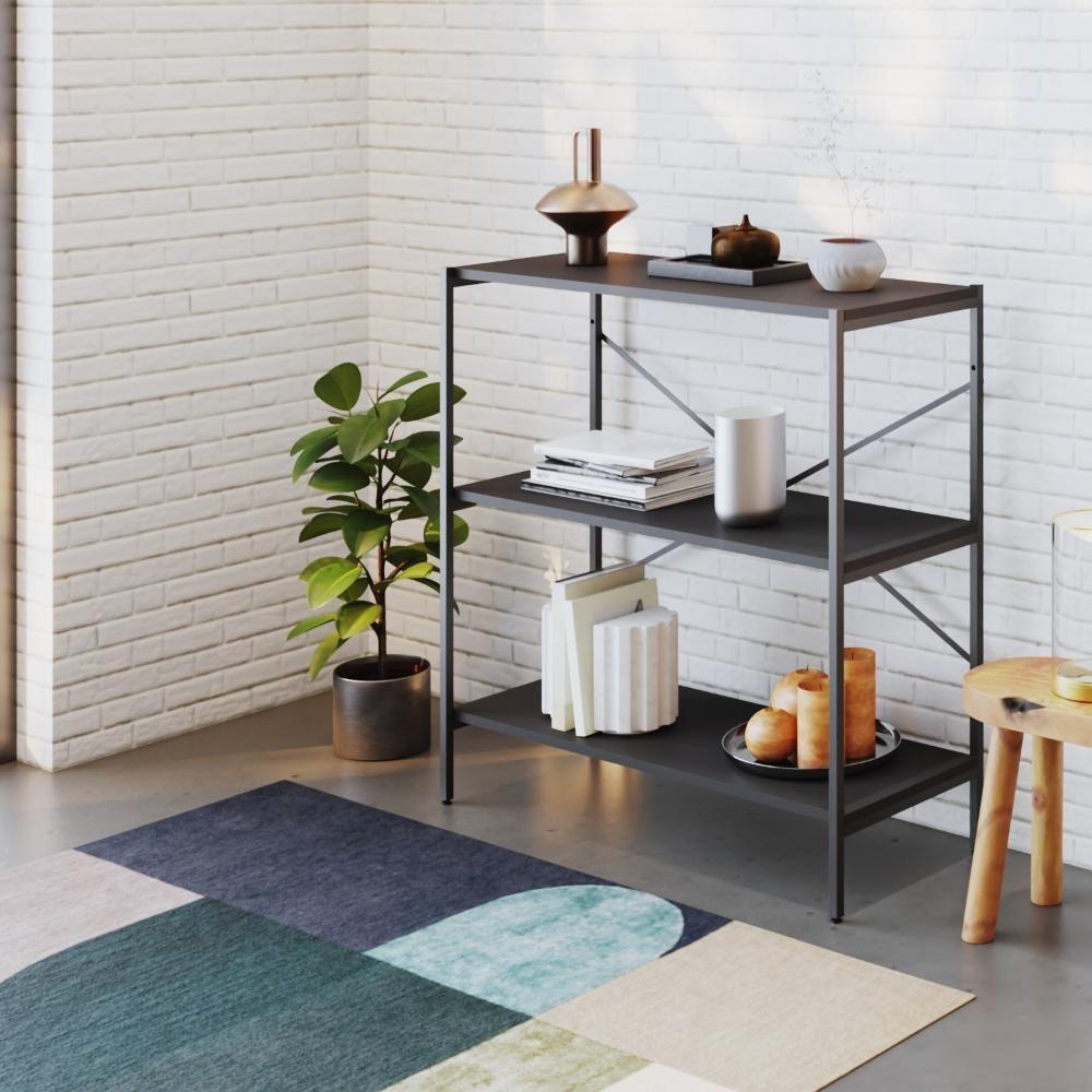 Estante C/03 Prateleiras 84x80x33cm Tub Tueh883 Preto ônix - Est.preta Preto ônix / Est.preta