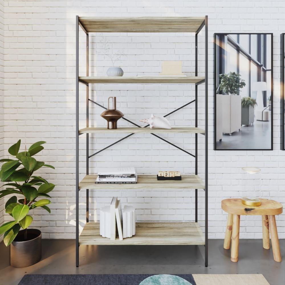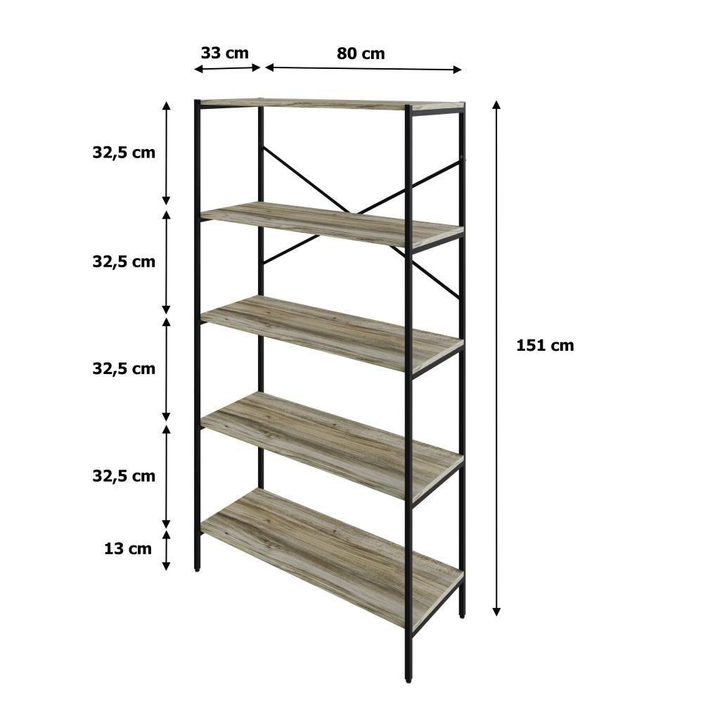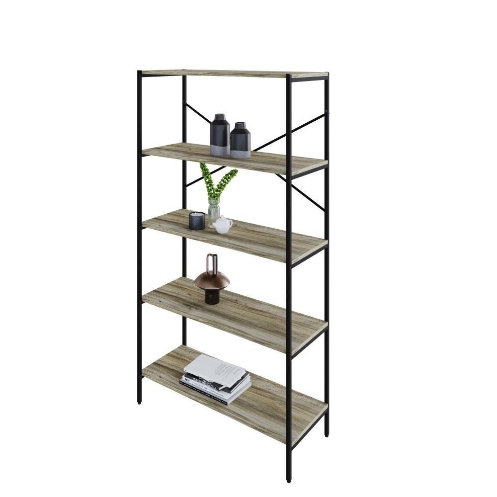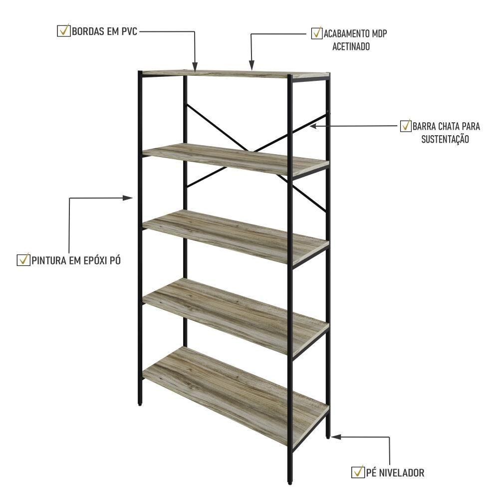 Estante C/05 Prateleiras 152x80x33cm Tub Tueh1585 Carvalho - Est.preta Carvalho / Est.preta