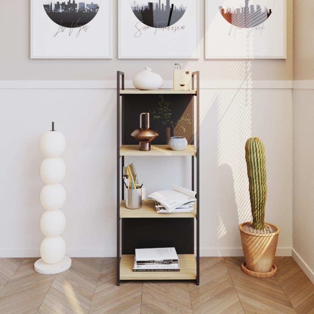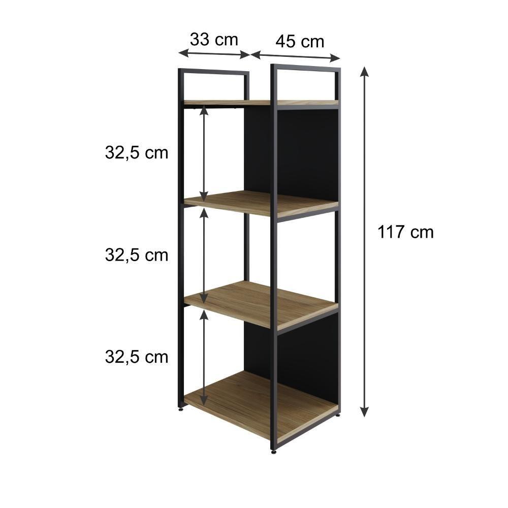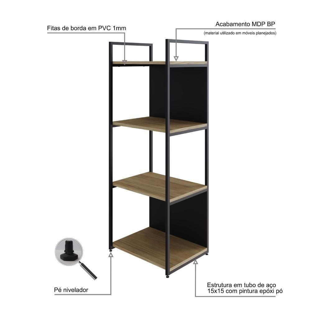Estante C/04 Prateleiras 118x45x33cm C/fundo Yon Vermont Oak/est.preta Vermont Oak/est.preta