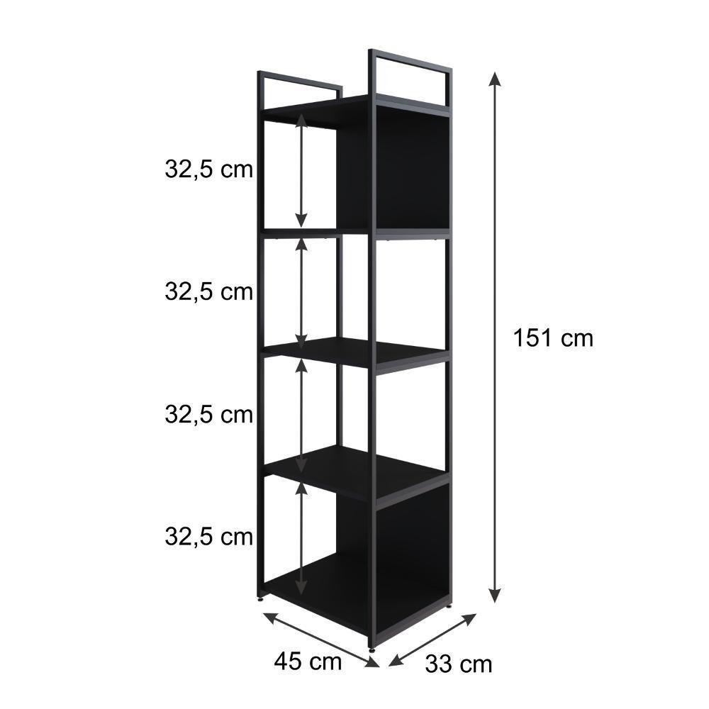 Estante C/05 Prateleiras 152x45x33cm C/fundo Yon Preto Tx/est.preta Preto Tx/est.preta