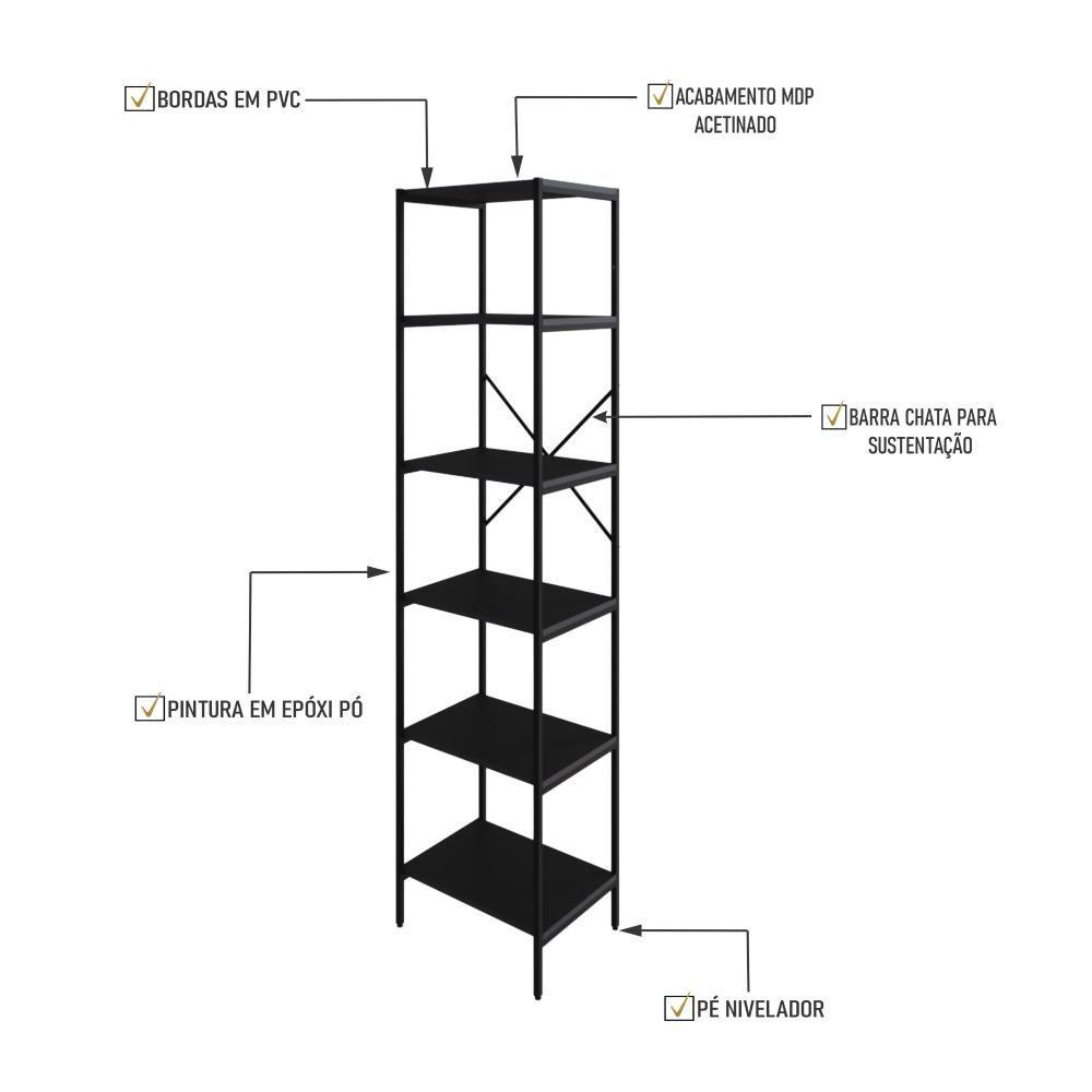 Estante C/06 Prateleiras 186x45x33cm Tub Tueh1846 Preto ônix - Est.preta Preto ônix / Est.preta