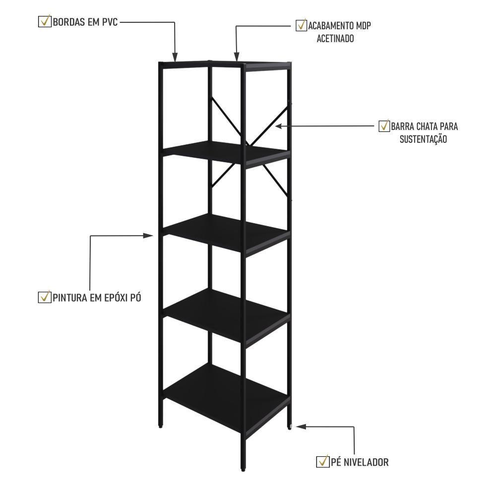 Estante C/05 Prateleiras 152x45x33cm Tub Tueh1545 Preto ônix - Est.preta Preto ônix / Est.preta