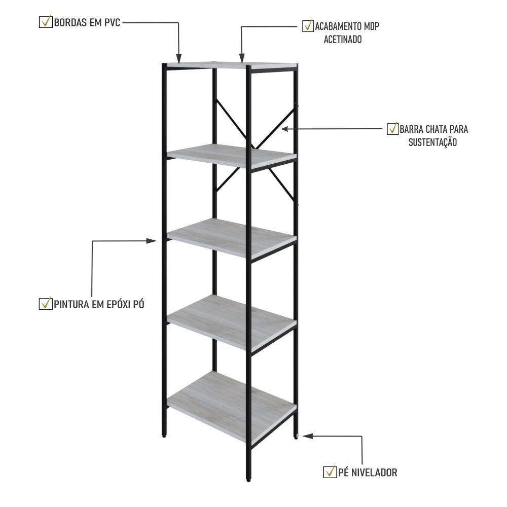 Estante C/05 Prateleiras 152x45x33cm Tub Tueh1545 Snow - Est.preta Snow / Est.preta