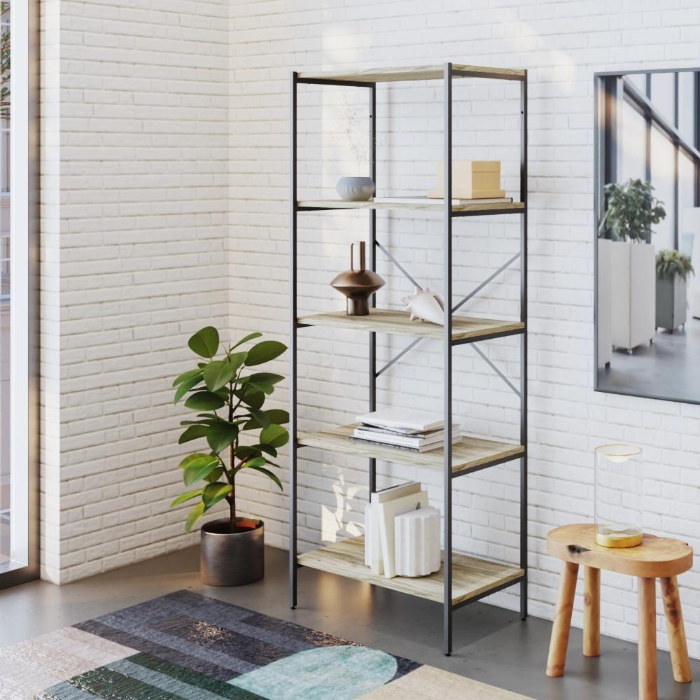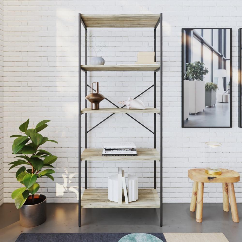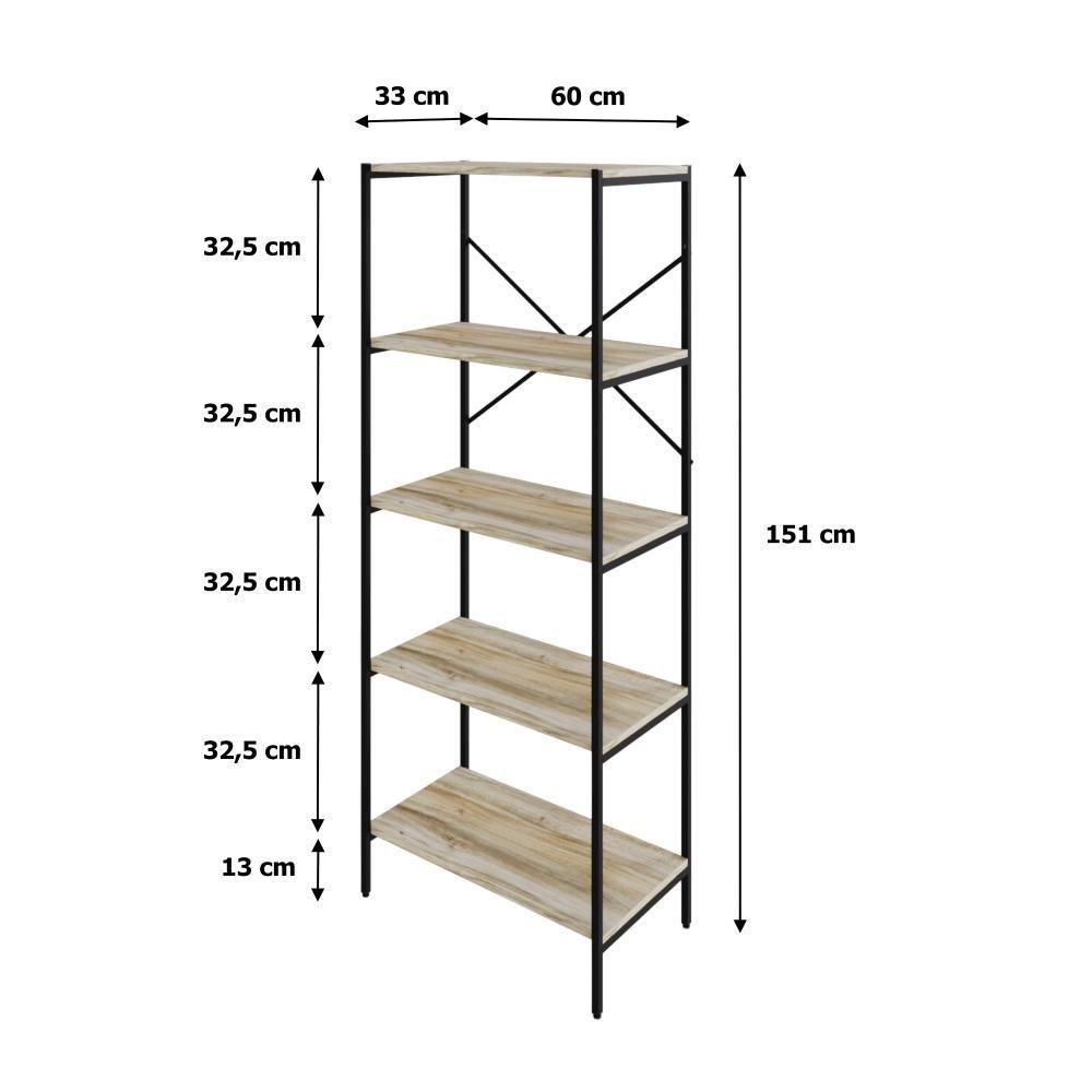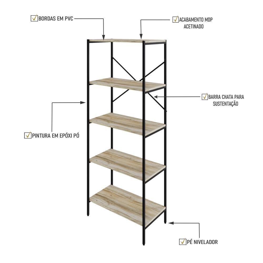Estante C/05 Prateleiras 152x60x33cm Tub Tueh1565 Carvalho - Est.preta Carvalho / Est.preta